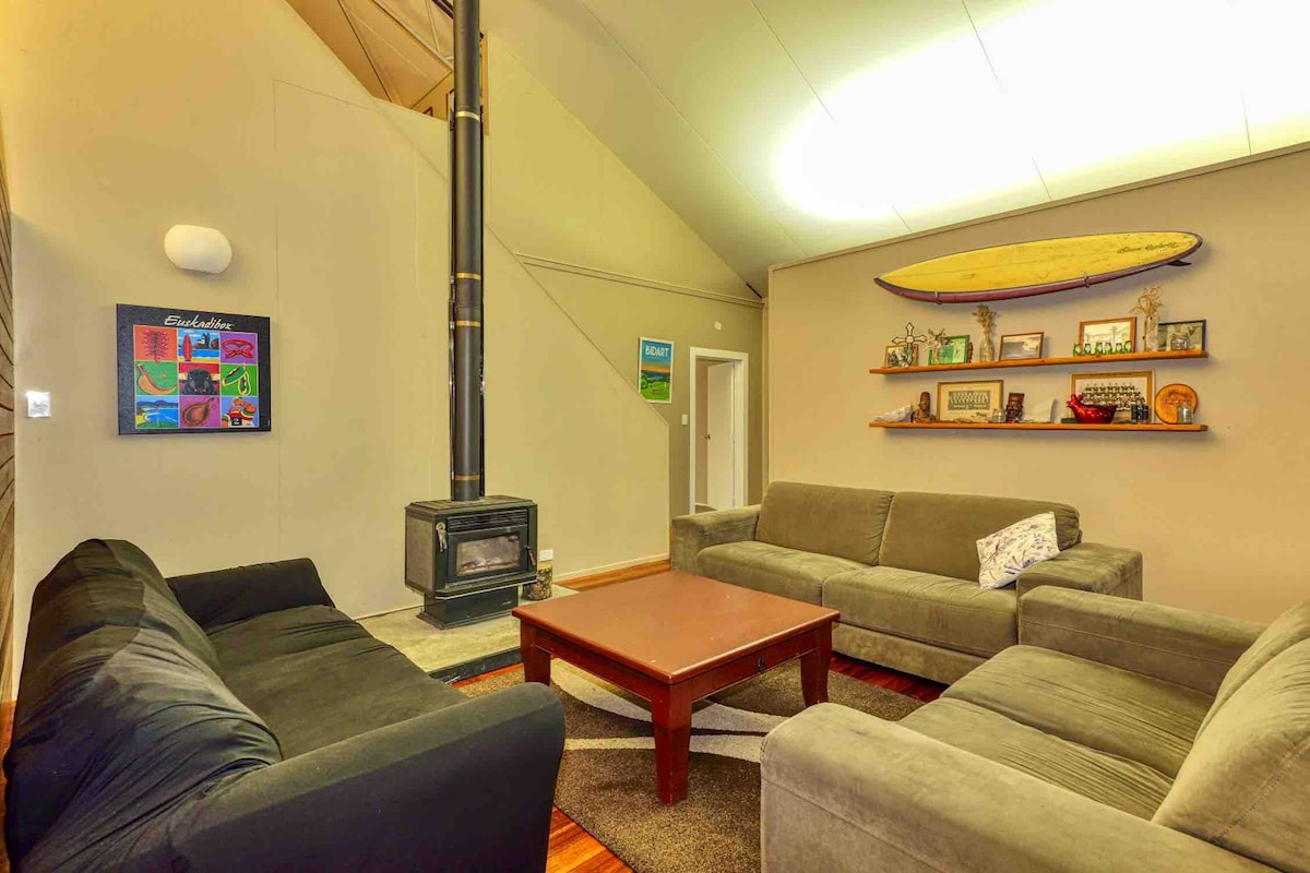 Lớp học kiwi bach nằm ngay bên kia đường từ một trong những điểm lướt sóng tốt nhất của bờ biển phía đông. Một nơi tuyệt vời để thư giãn trên boong hoặc ghế sofa và ngắm nhìn những người lướt sóng hoặc tự mình ra ngoài đó. Bach có hàng rào đầy đủ này có 4 phòng ngủ và 2 phòng tắm và lý tưởng cho các gia đình. Bên kia đường, bãi biển cát vàng 8km có một khu vực đá với một dòng suối chảy qua nó, tuyệt vời để săn cua, thu gom vỏ sò và xây dựng đập.