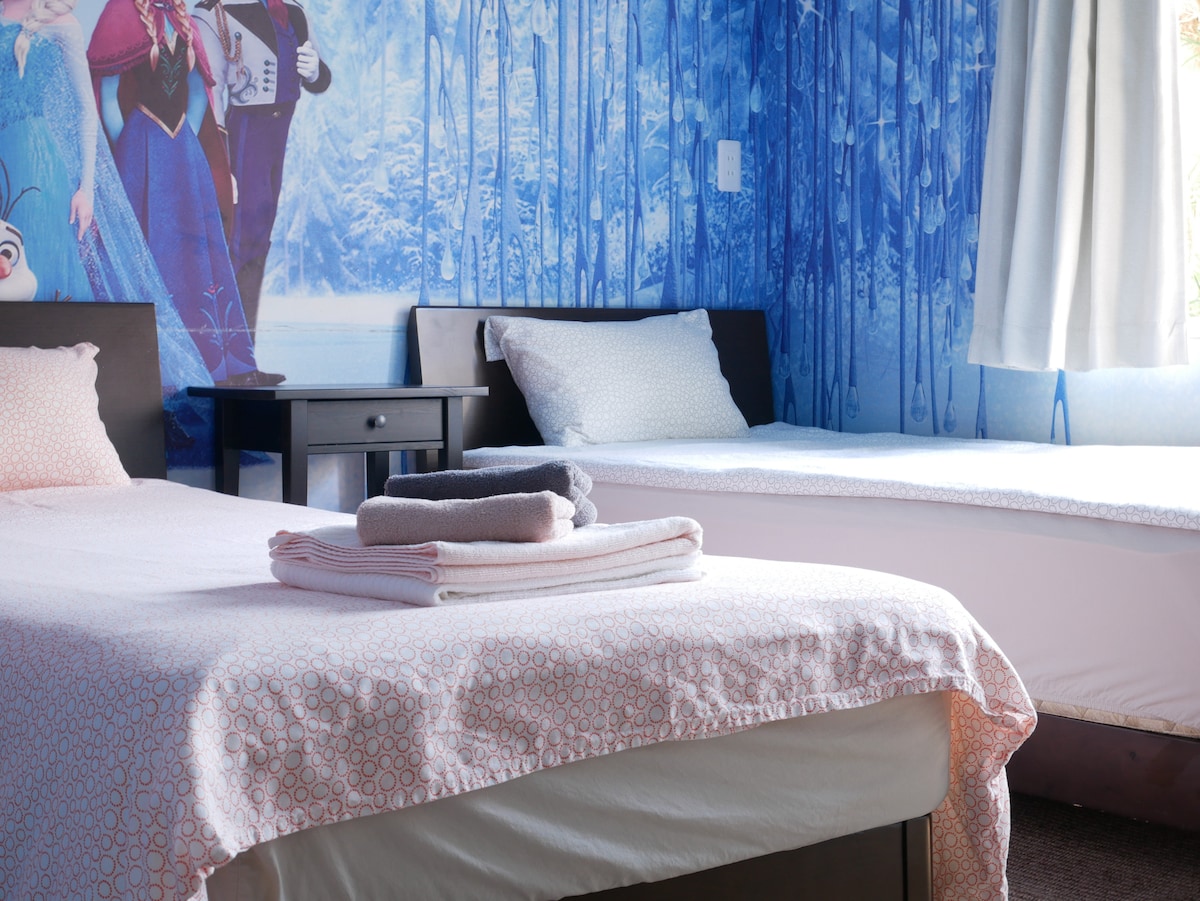 Continue your Disney dreams in a colorful mini museum 🎨🍭 🏰 9 min drive to Tokyo Disney Resort! In a quiet Urayasu area, this cozy, cute room features art decor and a double bunk bed for up to 4 guests (tight for 4 adults). 🚏 2–3 min walk from Horii 6-chome & Horii Higashi bus stops, easy access from Maihama, Shin-Urayasu & Urayasu 🚌 Enjoy Dyson & ReFa beauty items 💆♀️💕 3rd floor, no elevator. Free nostalgic snacks at our Dagashi Corner 🍪✨