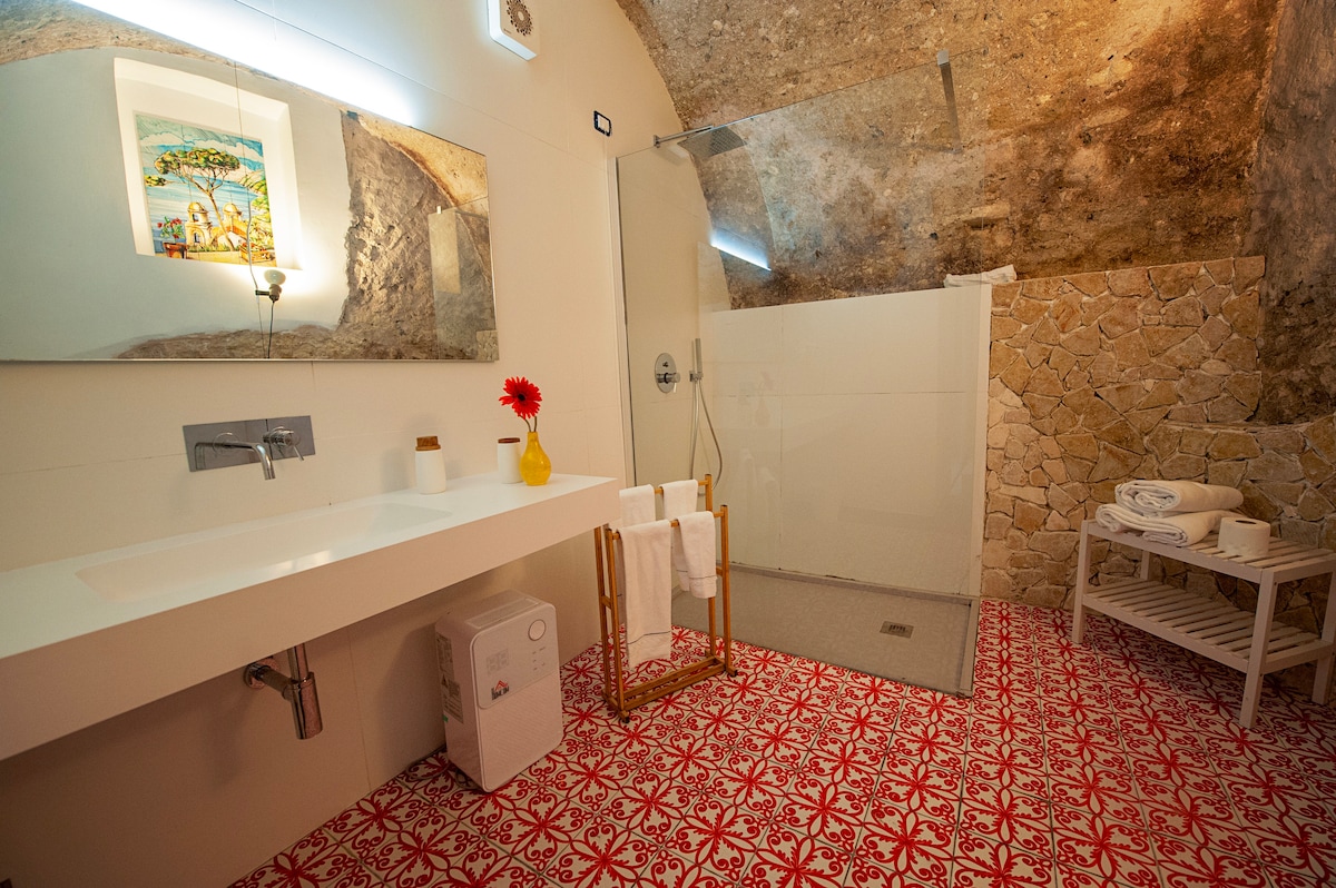 Cảnh hoàng hôn tuyệt vời trên Vịnh Sorrento từ ban công của chỗ ở nhìn ra biển Biệt thự lịch sử từ năm 800. Nhà nghỉ dưỡng quyến rũ, thanh lịch và được trang bị đầy đủ tiện nghi tại chỗ ở độc quyền. Một phòng ngủ đôi, một phòng khách với một giường sofa đôi rất thoải mái, hai phòng tắm, hai phòng tắm, bếp nhỏ. Nó có tường đá, trần nhà cao, đồ nội thất cổ, cùng với các tính năng hiện đại như phòng xông hơi hồng ngoại, vòi sen trị liệu sắc tố, wifi nhanh. Sân hiên riêng. Miễn phí đỗ xe. CUSR 15063080EXT1055