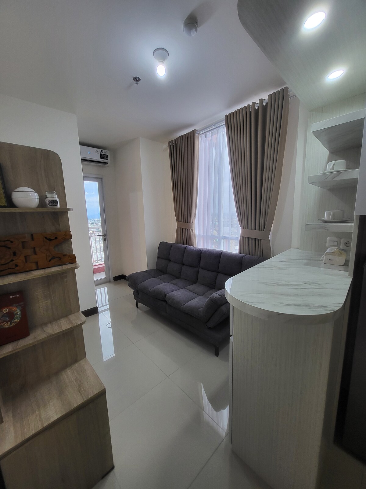 TOÀN BỘ CĂN HỘ CHO THUÊ. Căn hộ mới đầy đủ tiện nghi. Nằm ở trung tâm khu thương mại ở Balikpapan. Gần mọi thứ. Chỉ cần đi bộ vài bước (1 phút đi bộ) đến trung tâm mua sắm /trung tâm mua sắm được gọi là BC. Có rất nhiều món ăn và giải trí. Có một hồ bơi lớn nhìn ra biển, phòng xông hơi khô, trung tâm thể dục, sân chơi trẻ em, v.v. (tất cả các tiện nghi trong căn hộ đều có thể được khách sử dụng MIỄN PHÍ).