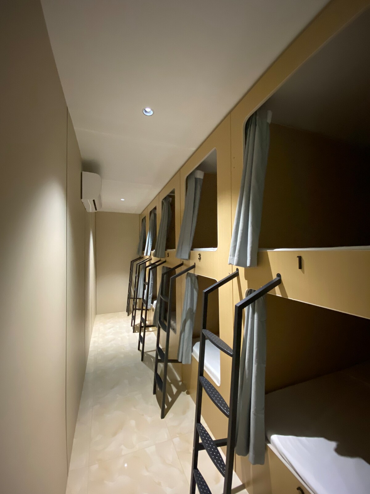 Ở trong Phòng ngủ tập thể 12 giường dành cho nữ tại BuenaSentro Hostel - khách sạn an toàn, phong cách và giá cả phải chăng của bạn ở Manila. Mỗi giường khoang ngủ có rèm riêng tư, đèn đọc sách, ổ cắm điện và tủ khóa an toàn. Phòng có điều hòa không khí với phòng tắm chung sạch sẽ và dịch vụ dọn phòng hàng ngày. Hoàn hảo cho khách nữ đi một mình hoặc các nhóm đang tìm kiếm sự thoải mái và giá trị tuyệt vời ngay trung tâm thành phố. Đặt giường của bạn ở Manila ngay hôm nay!