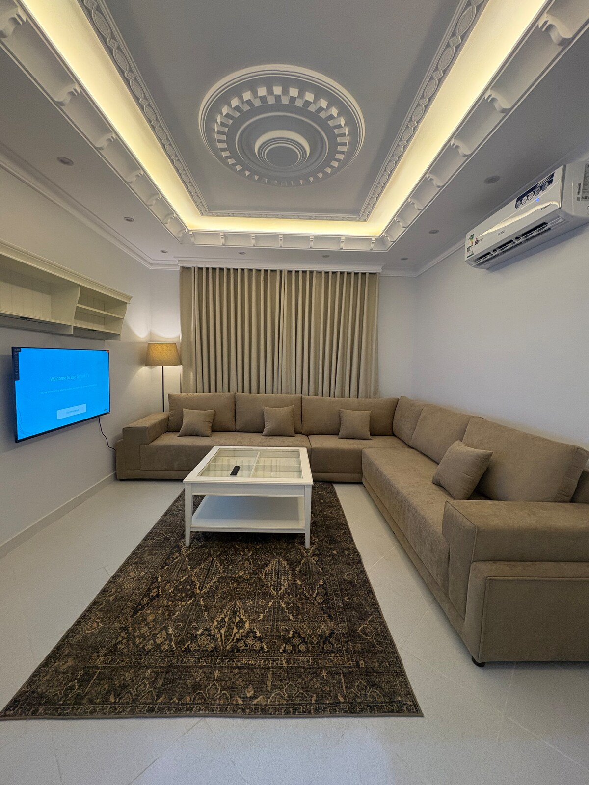 2BR/2BA ở Batha Quraish, Makkah — những điều cần thiết trong nháy mắt: 🚌 Đến Al‑Haram: Xe đưa đón bãi đậu xe Kudai + bến xe buýt ~7 phút 📍 Batha Quraish; gần nhà thờ Hồi giáo, siêu thị, nhà hàng, quán cà phê 🛏️ 5 giường: 2 phòng ngủ (1 giường cỡ king, 2 giường đơn, sofa) | 2 phòng tắm 🔐 Tự nhận phòng: mã cửa an toàn ❄️ Điều hòa nhiệt độ ở tất cả các phòng 🌐 Wifi tốc độ cao | 📺 TV 4K thông minh 65 inch Thảm 🕌 cầu nguyện được cung cấp Nhà bếp 🍳 đầy đủ tiện nghi 📚 Sách tôn giáo | 🎲 trò chơi 🧺 Phòng giặt là 🅿️ Chỗ đỗ xe miễn phí trước tòa nhà 🛗 Tầng 1 có thang máy