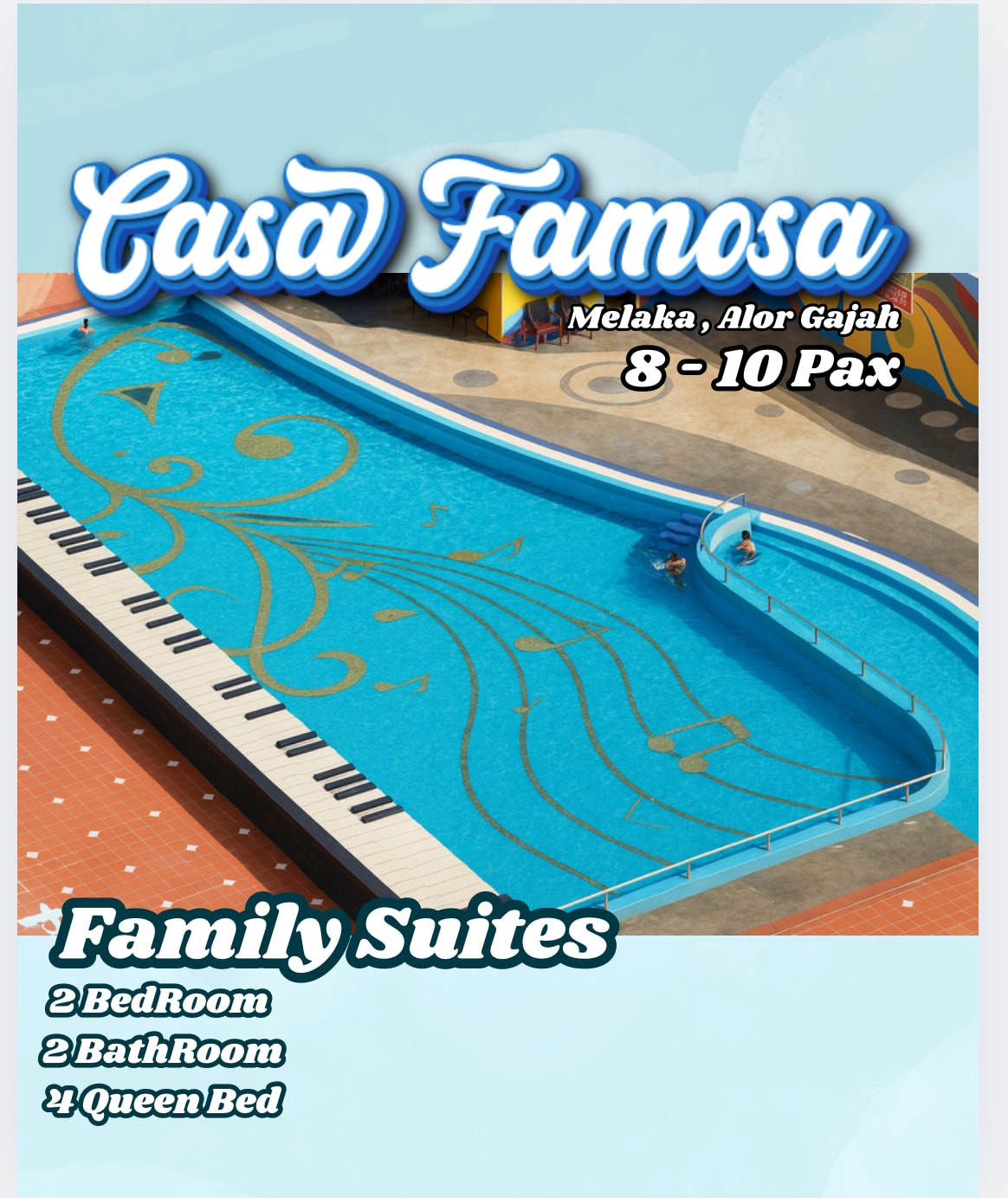 Đây là tòa nhà một tầng Semi-D tọa lạc tại Taman Tasik Utama, Ayer Keroh và gần Ayer Keroh Toll (5 phút). Nhà đương đại rất ấm cúng, hiện đại với hồ bơi riêng (3m W x 10m L x 1,2m D) và thoải mái cho gia đình lên đến 12 người (bao gồm cả trẻ em). Được trang bị đầy đủ nội thất, một nơi tốt nhất để thư giãn và mang đến thời gian lưu trú TỐT NHẤT cho bạn bè/thành viên gia đình tụ họp.
