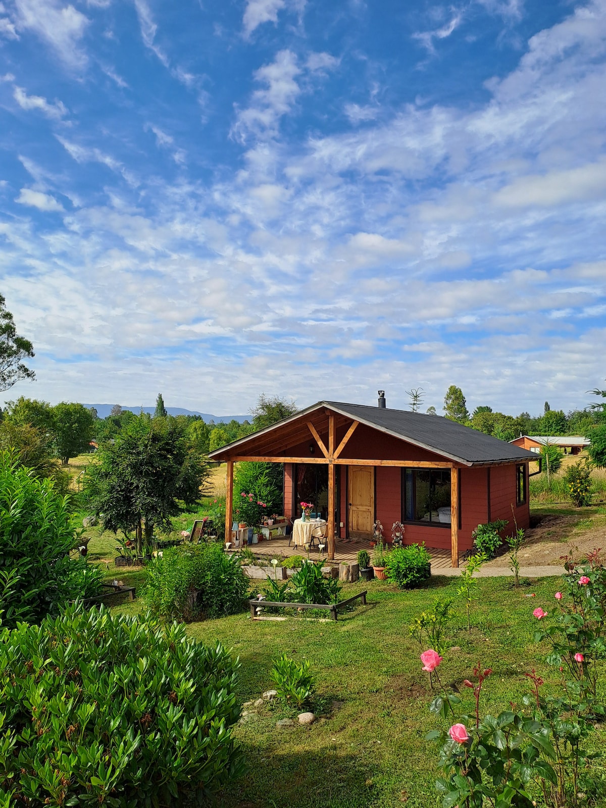 IG @casavacacionalpanguipulli Acogedora cabaña en el sur de Chile, ideal para programar tus días de aventura y descanso. Situada a 4 km del centro urbano de Panguipulli, Región de Los Ríos. En una parcela totalmente independiente y rodeada de frondosa naturaleza. Un lugar amplio, cómodo y privado para tres personas. ¡La tranquilidad de este lugar te va a encantar!