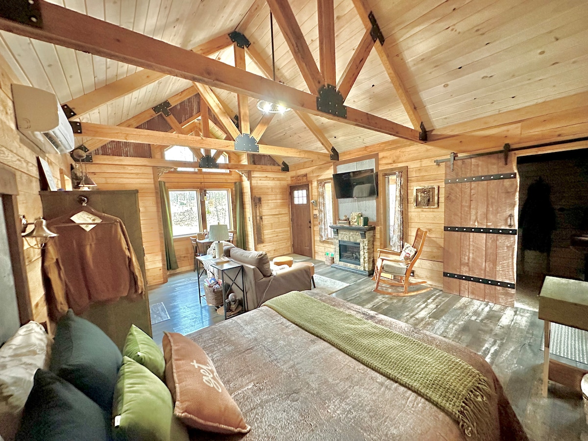 Minutes away from fishing hunting and shopping! Located next to a family farm. You can arrange a time to visit and meet their cute cuddly critters! Be our guest! Looking forward to a ideal country cabin or relax in the beautifully lit claw foot tub or roast some delicious marshmallows next to the large rock fireplace located in the living room. It is amazing but the sleeping quarters are located up a flight of stairs if you have any disabilities that prevent stairs the cabin is not ideal.