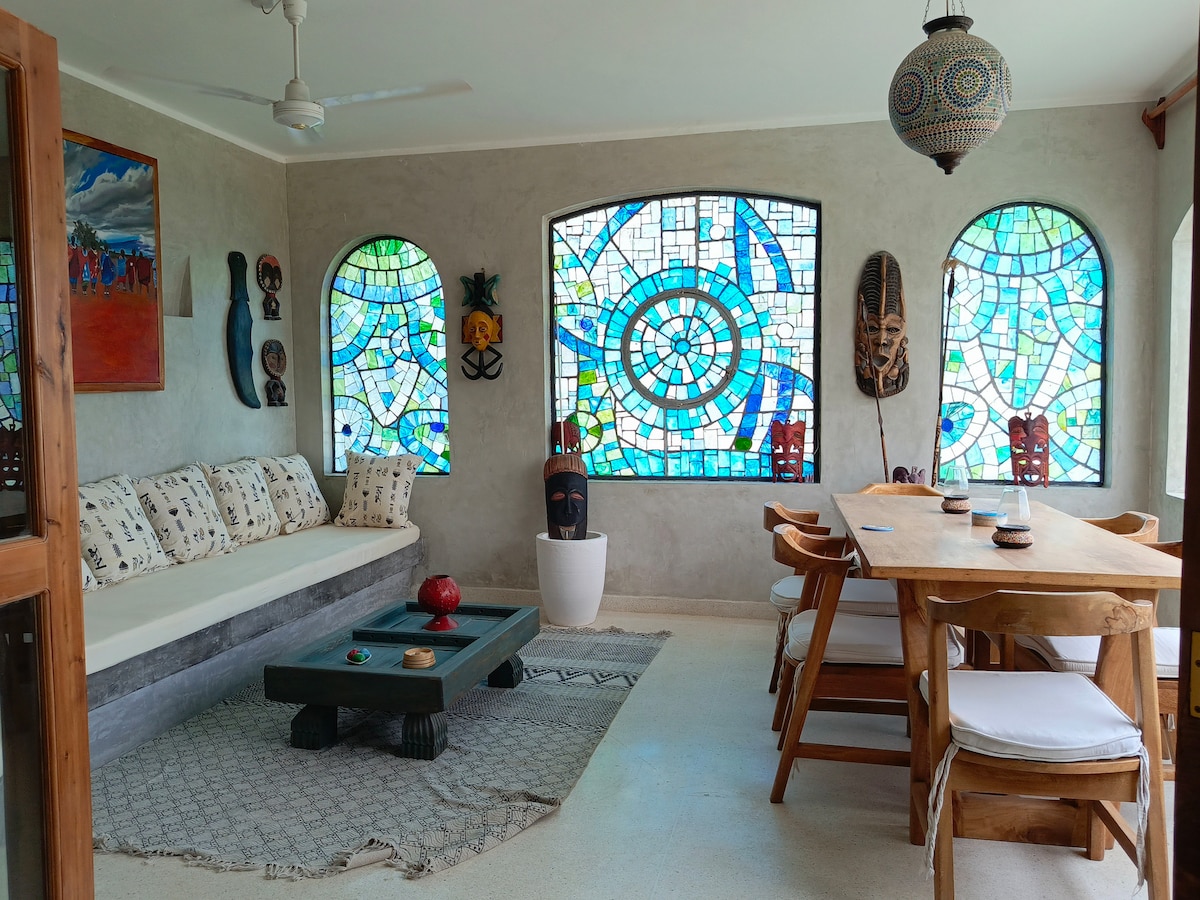 Biệt thự nằm bên trong một khu nghỉ dưỡng gần trung tâm và các bãi biển, khoảng 5 phút đi bộ. Mới được xây dựng gần đây, cung cấp đồ nội thất phong cách Swaili mới. Tất cả các phòng ngủ đều có phòng tắm riêng. Các phòng thoáng mát và sáng sủa và ở tầng 1, bạn sẽ có một căn hộ bán mở theo phong cách châu Phi, tường tre và phòng tắm cá nhân. Trong vườn có một hồ bơi 30 m lộng lẫy. Bao gồm dịch vụ vệ sinh hàng ngày, dịch vụ đầu bếp theo yêu cầu. Chúng tôi có cùng biệt thự cho các nhóm. bao gồm wi fi