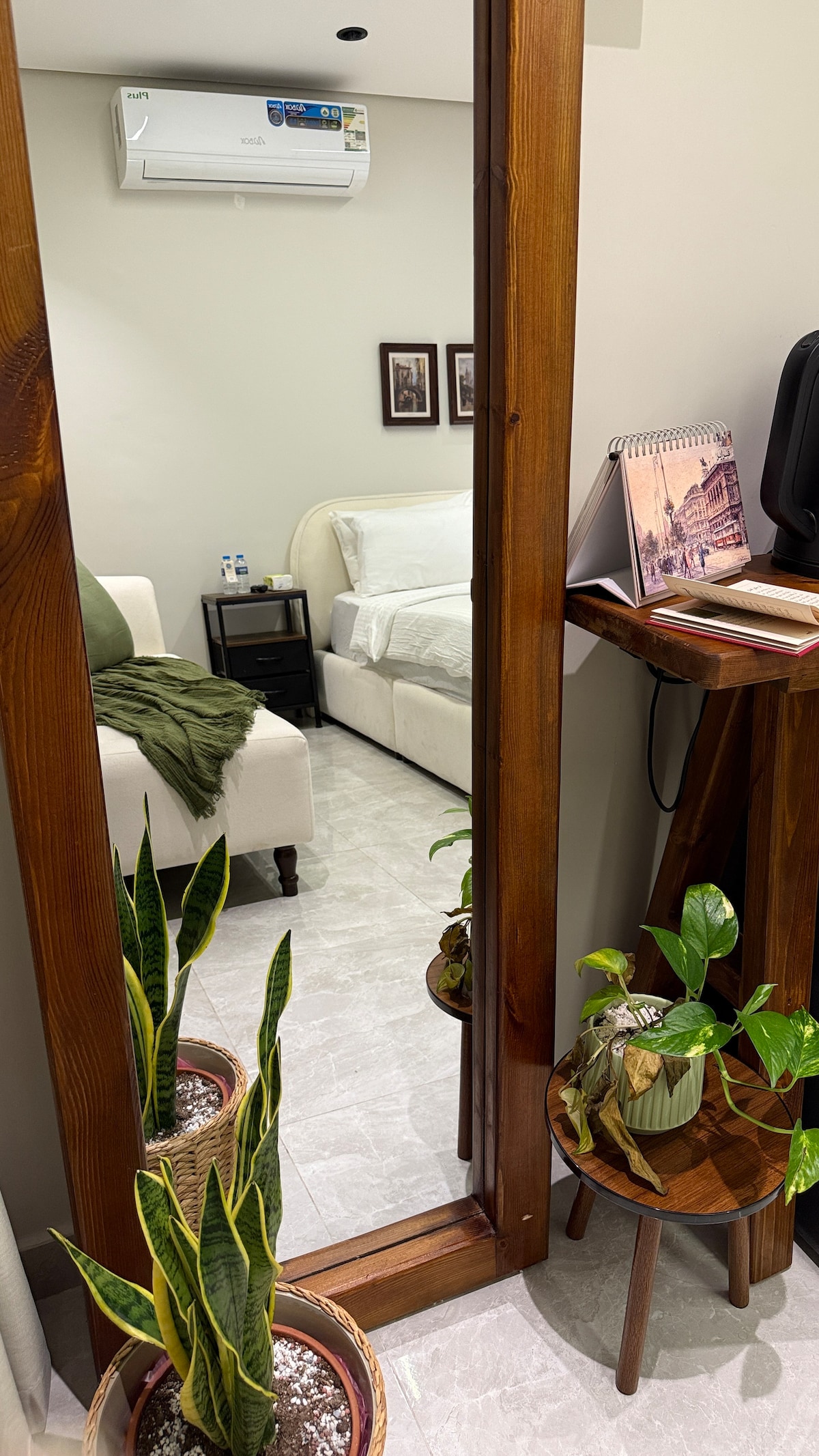 ✨ جناح فاخر بتصميم عصري ولمسات فندقية ✨ 🏠 مواصفات الجناح: • غرفة نوم ماستر تضم سريرًا كبيرًا ومفروشات فندقية فاخرة. • دورة مياه متكاملة تحتوي على جميع المستلزمات (شامبو، صابون، فرشاة ومعجون أسنان، مناشف). • صالة فسيحة تضم كنبًا مريحًا، وطاولة طعام أنيقة، وتلفازًا ذكيًا بقياس 65 بوصة مزودًا بخدمات (YouTube Pre وShahidوNetflix). • مطبخ متكامل يحتوي على ميكرويف، وثلاجة، وغلاية مع ضيافة متكاملة (شاي، قهوة، مياه، مشروبات غازية). 🌿 استمتع بتجربة سكنية راقية تجمع بين الهدوء، الفخامة، والخصوصية.