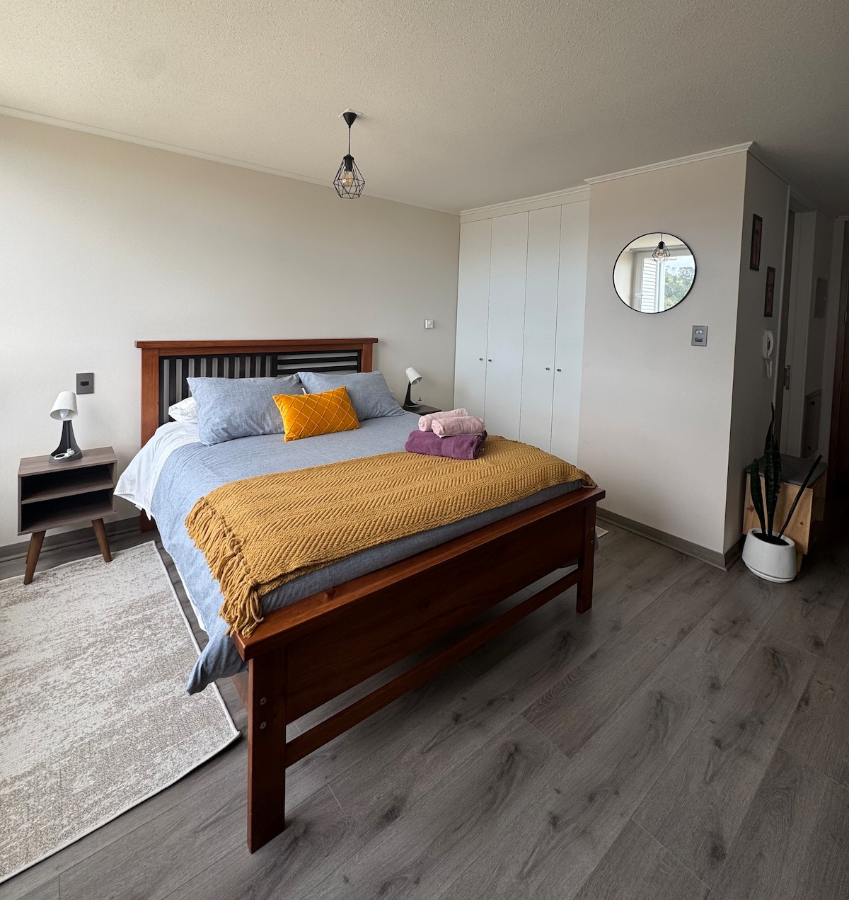 Căn hộ đầy đủ tiện nghi với một phòng ngủ, phòng tắm khép kín. Nhà bếp trang bị tiện nghi, đá granit. Bãi đỗ xe cho 1 xe ô tô. Phù hợp cho 3 người Vị trí tuyệt vời, gần siêu thị, ngân hàng, giặt ủi, quán rượu và nhà hàng, trung tâm mua sắm và vận động tại cửa. Khung cảnh tuyệt đẹp của Laguna Chica de San Pedro de la Paz. Cách trung tâm Concepción 10 phút, cách sân bay 12 phút, cách Bến xe buýt Collao 15 phút. Mục tiêu 24 giờ.