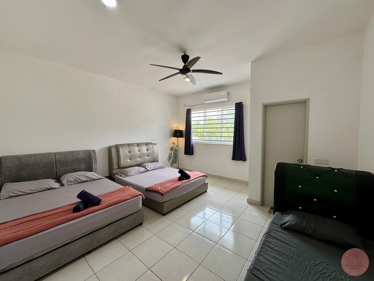 Thông tin chỗ ở: - 3 giường, 2 phòng tắm (có máy nước nóng) - Điều hòa nhiệt độ (phòng ngủ chính & phòng khách) - Tủ lạnh và máy giặt - 5 quạt tự động - Wi-Fi (100mbps), TV (với Netflix) - Coway - Bàn là và cầu là, máy sấy tóc - Dầu gội đầu và sữa tắm, móc treo Gần đó: - 5 phút đến AEON, Mydin, Tesco, NSK - 2 phút đến Đồn cảnh sát, Trạm cứu hỏa, Phòng khám, Tòa án, Công viên thành phố - 10 phút đến Seremban, Sendayan, KTM - 40 phút đến KLIA/KLIA2