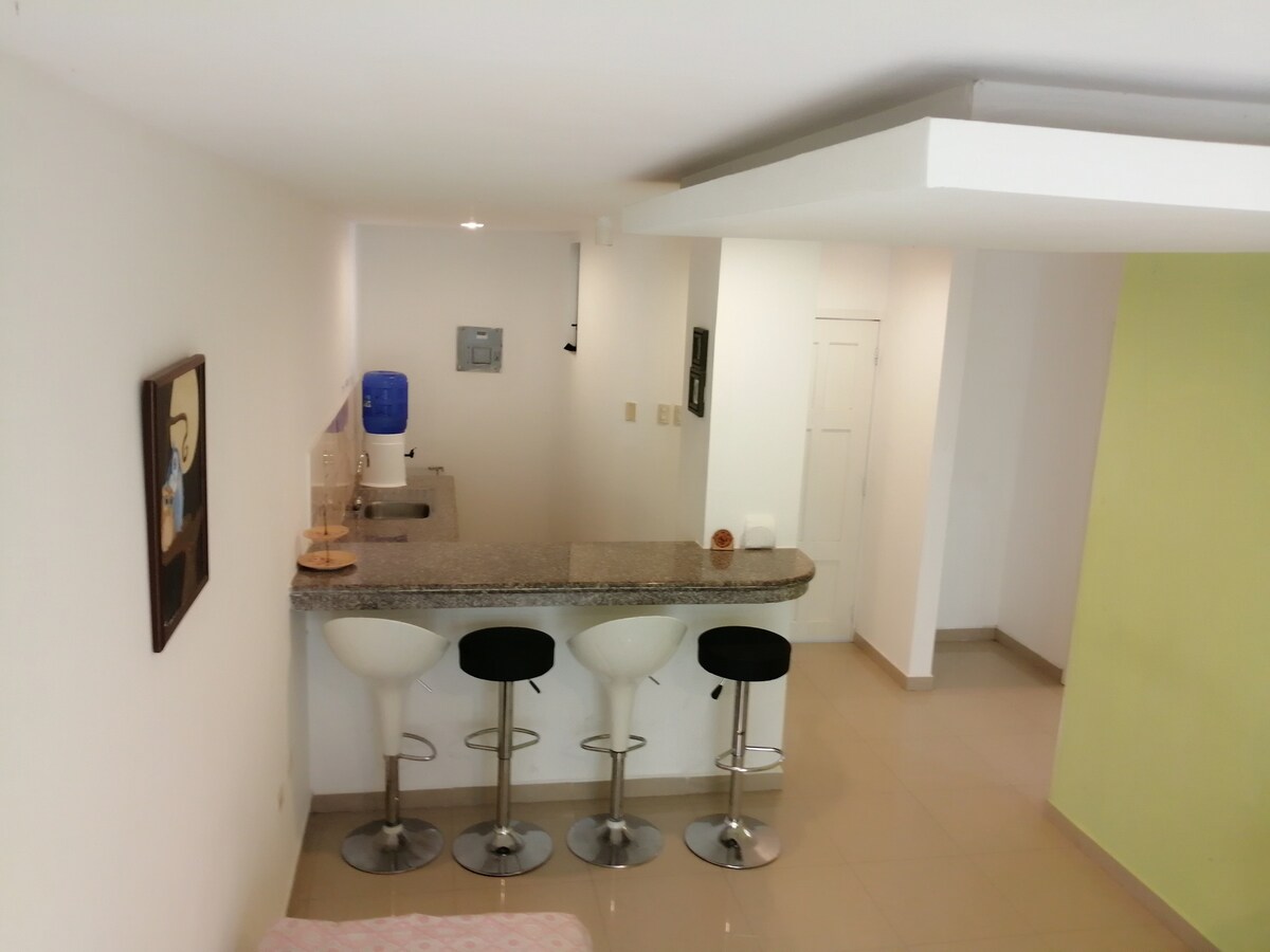 Chào mừng bạn đến với căn hộ ấm cúng của chúng tôi ở Khu vực Barbasquillo, cách Plaza la Cuadra một dãy nhà. Vị trí là yếu tố nổi bật của nó, nó nằm trong khu vực độc quyền nhất của Manta, đầy đủ các nhà hàng, cửa hàng và những thứ khác. Đi bộ bạn đang ở: 4 phút - Plaza de la Cuadra 3 phút - Nhà thuốc Fybeca 10 phút - Khách sạn Wyndham 15 phút - Khách sạn Poseidon 18 phút - Nhà hàng Martinica Tòa nhà có hồ bơi, bể sục, phòng tập thể dục, trò chơi trẻ em và nhiều hơn nữa! Chúng tôi có một điểm sạc cho xe điện.