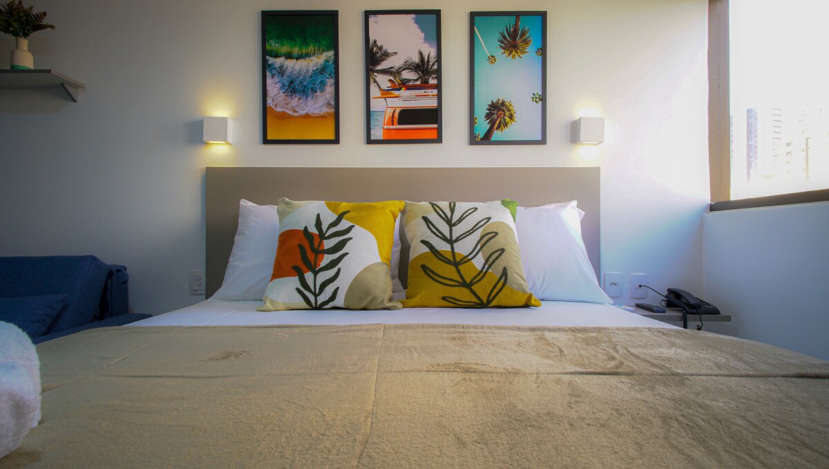 Căn hộ hiện đại với ban công và hoàng hôn quyến rũ bên cạnh Trung tâm mua sắm Manaíra, ở một trong những địa điểm tốt nhất ở João Pessoa. Được thiết kế bởi một kiến trúc sư, không gian kết hợp sự thoải mái, phong cách và tính thực tiễn. Lý tưởng cho các cặp đôi và khách du lịch đang tìm kiếm chỗ ở thanh lịch ở Manaíra, gần bãi biển, nhà hàng và cửa hàng. Một bầu không khí ấm cúng để thư giãn sau một ngày tham quan hoặc làm việc trong yên bình.