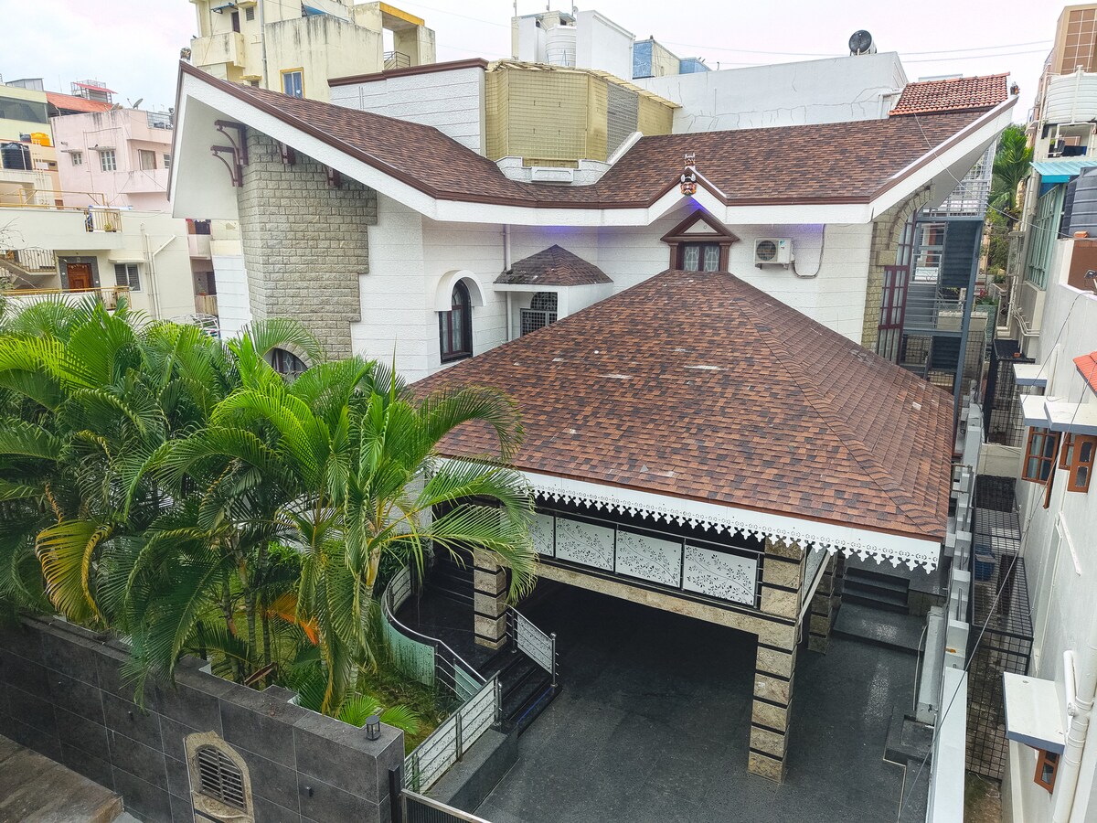 Ngôi nhà 3 tầng của chúng tôi ở Bắc Bangalore được trang bị nội thất hiện đại, trang nhã với nội thất hiện đại, trang nhã. Ngôi nhà hoàn hảo cho 6-8 khách, thân thiện với gia đình, rộng rãi, riêng tư và xa hoa với các tiện nghi. 30 phút lái xe từ sân bay và 10 phút từ ga đường sắt Yeshwantpur. Nằm gần Công viên Công nghệ Manyata, IISc, Bệnh viện Ramaiah, ISCKON và MSRIT. Các địa điểm tổ chức sự kiện như Ramaiah Memorial Hall và Gokulam Grand nằm gần đó. Gần đường New Bel, Palace Grounds, IKEA, trung tâm thương mại Orion, ga tàu điện ngầm, v.v.