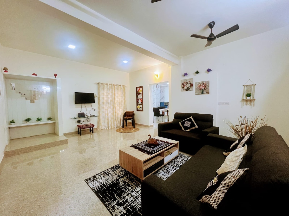 Rộng rãi 3 BHK, tọa lạc tại Central Mangalore. Lý tưởng cho các gia đình/nhóm, bao gồm bếp nhỏ và bãi đỗ xe 1 ô tô. Nằm trong khu dân cư yên bình, bạn có thể dễ dàng đến các nhà hàng, cửa hàng, đền thờ, phương tiện giao thông công cộng, nhà ga và sân bay. Tận hưởng nguồn điện đáng tin cậy (có dự phòng) và nước. Gần các bệnh viện và trường cao đẳng lớn, ngôi nhà này mang đến sự thoải mái cho thời gian lưu trú ngắn hoặc dài, đảm bảo trải nghiệm không rắc rối với tất cả các tiện nghi thiết yếu gần đó.