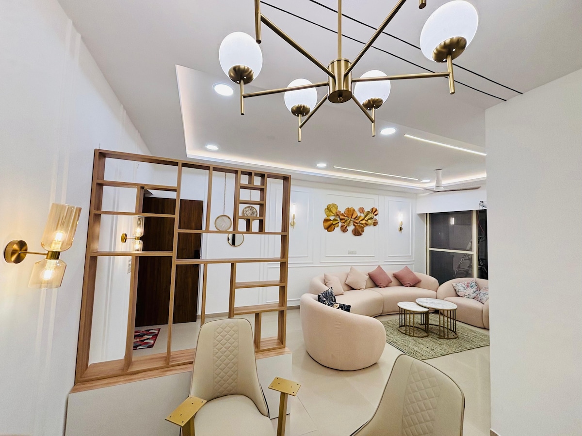 Welcome to our elegant 3BHK luxury apartment in a peaceful prime neighborhood of Indore—perfect for families, professionals & small groups. Unwind in 3 beautifully designed AC bedrooms with attached baths and private balconies offering refreshing city & park views. Enjoy secure digital lock entry, free parking, a fully equipped modular kitchen, washing machine, fast Wi-Fi & a dedicated workspace. Close to transport and shopping, yet calm and relaxing—your perfect Indore stay awaits. ✨