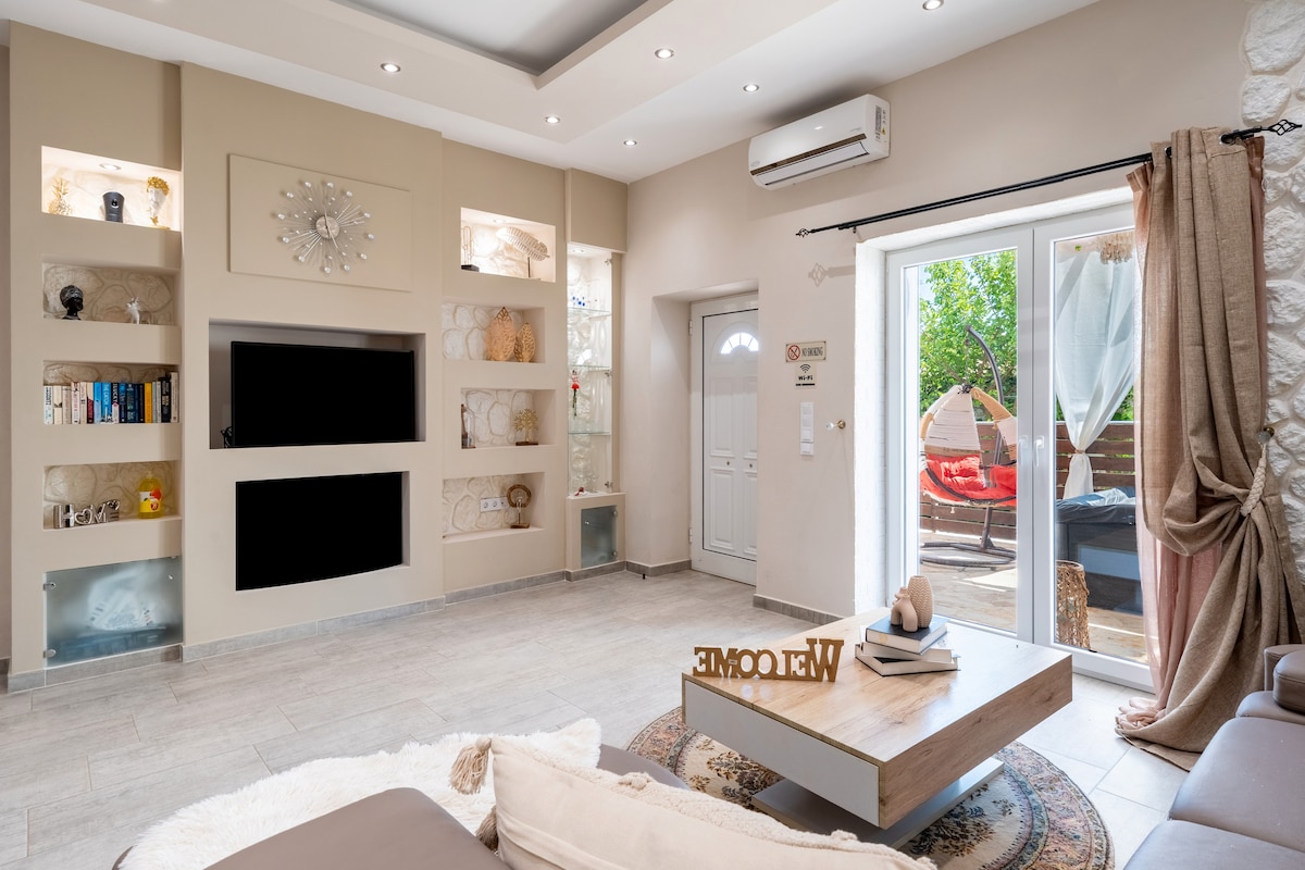 Biệt thự hướng biển 2 tầng sang trọng trong Bougainville Bay Resort với tầm nhìn ngoạn mục ra biển Ionia và đảo Corfu. Nó có 2 phòng ngủ, phòng tắm đầy đủ, sân thượng khổng lồ chỉ cách biển vài mét. Nó bao gồm bãi đỗ xe riêng, sàn đá granit Ý trong suốt, nhà bếp thiết kế, TV 4K 55"với Netflix và nội thất mới. Cách biển vài mét, với Internet cáp quang (WiFi) miễn phí, giặt ủi trong căn hộ và dịch vụ dọn phòng. Sử dụng hồ bơi, spa và ô dù trên bãi biển (thêm phí).