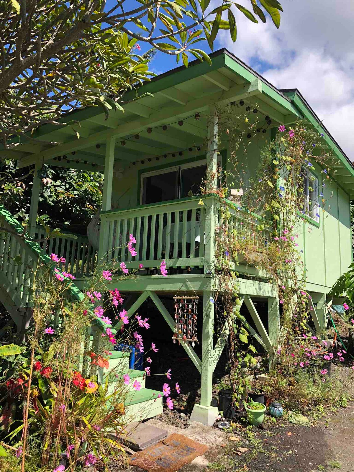 Aloha and Welcome to our cozy ohana. You can expect clean, comfy, modern, with lots of light in this spacious guest suite. The accommodation is in a quiet and safe neighborhood with convenient parking. At a higher elevation, the area is much cooler and breezier than staying in town and you can fall comfortably asleep in our comfortable queen-sized bed, listening to the sounds of coqui frogs and waking up to the beautiful sound of birds. We hope you enjoy your stay with us!