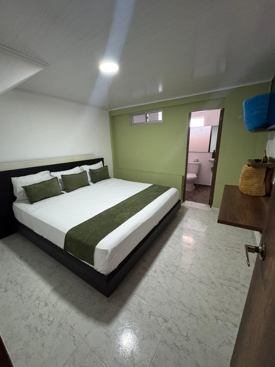 Phòng gác xép độc lập với giường bán đôi, lý tưởng cho một người hoặc một cặp vợ chồng, nó có đồ lót, bàn nhỏ vào ban đêm, phòng tắm riêng có nước nóng, bếp nhỏ, tủ lạnh ( đối với thời gian ở dài hơn 15 ngày), dịch vụ Wi-fi, parabol và TV, lễ tân và dịch vụ giám sát 24 giờ. dịch vụ rom buổi sáng, chai nước. dịch vụ hàng tháng có giảm giá, cho doanh nghiệp, sinh viên và người có liên quan.