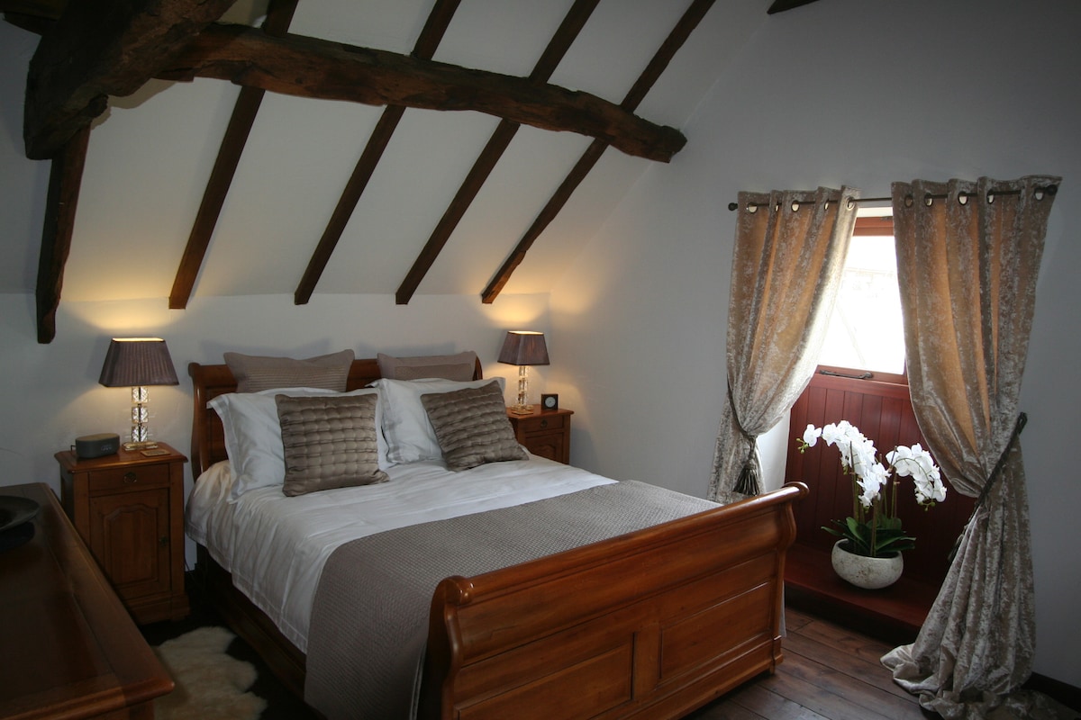 Nhà nghỉ thôn dã ấm cúng những năm 1700, lò sưởi mở và giường cỡ king