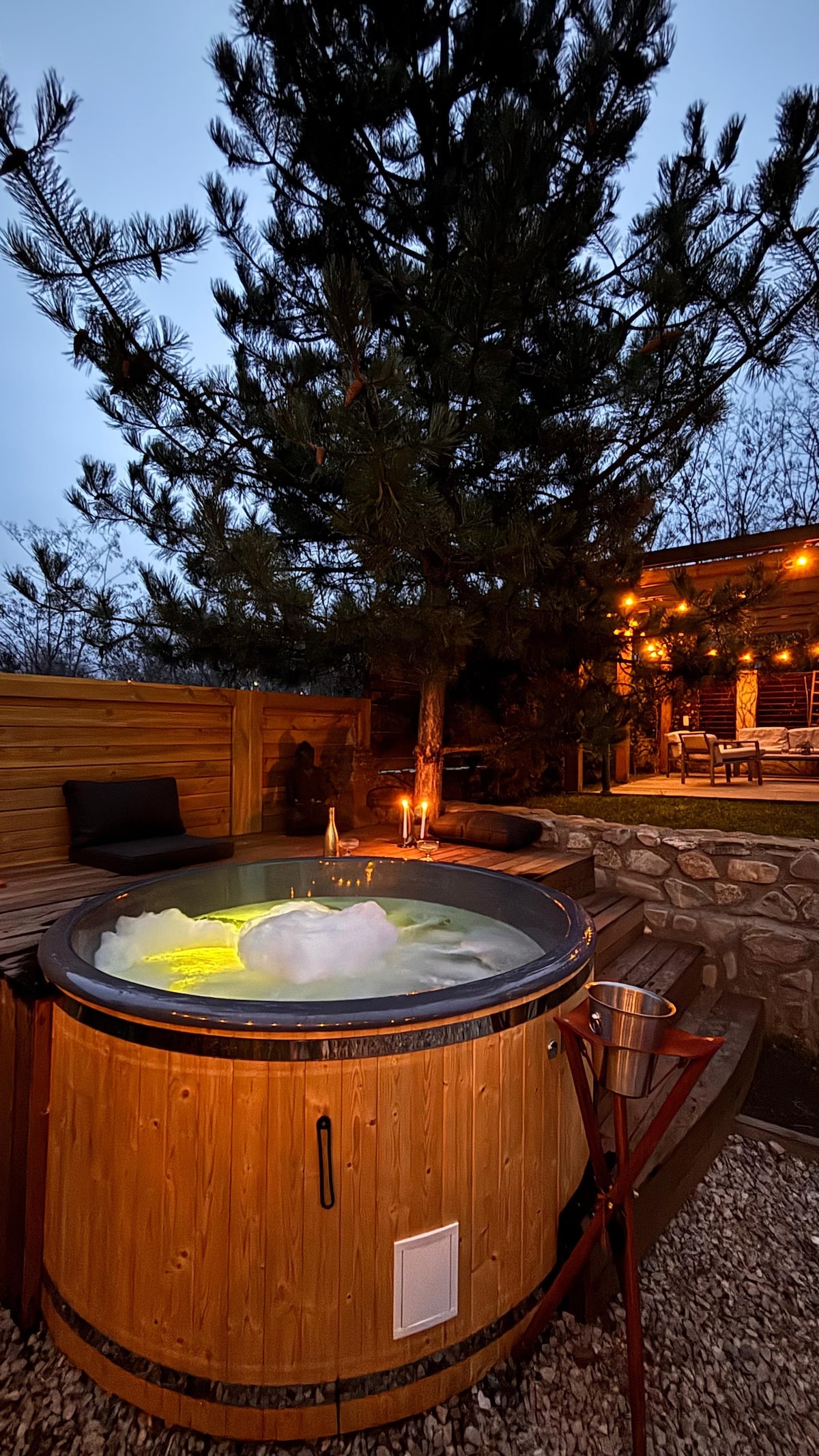 Escape to this charming cottage, perfectly nestled in nature yet just 3 km from Buzău. Offering the best of both worlds—tranquility and convenience—this picturesque retreat is ideal for couples or families seeking a peaceful stay. Perfect for couples, it features an open living area with a kitchen and a cozy loft bedroom, accommodating up to 4 guests. Enjoy relaxation with a hot tub for 35 euros/day/2persons (18:00 - 24:00) while taking in scenic courtyard views from your private terrace.