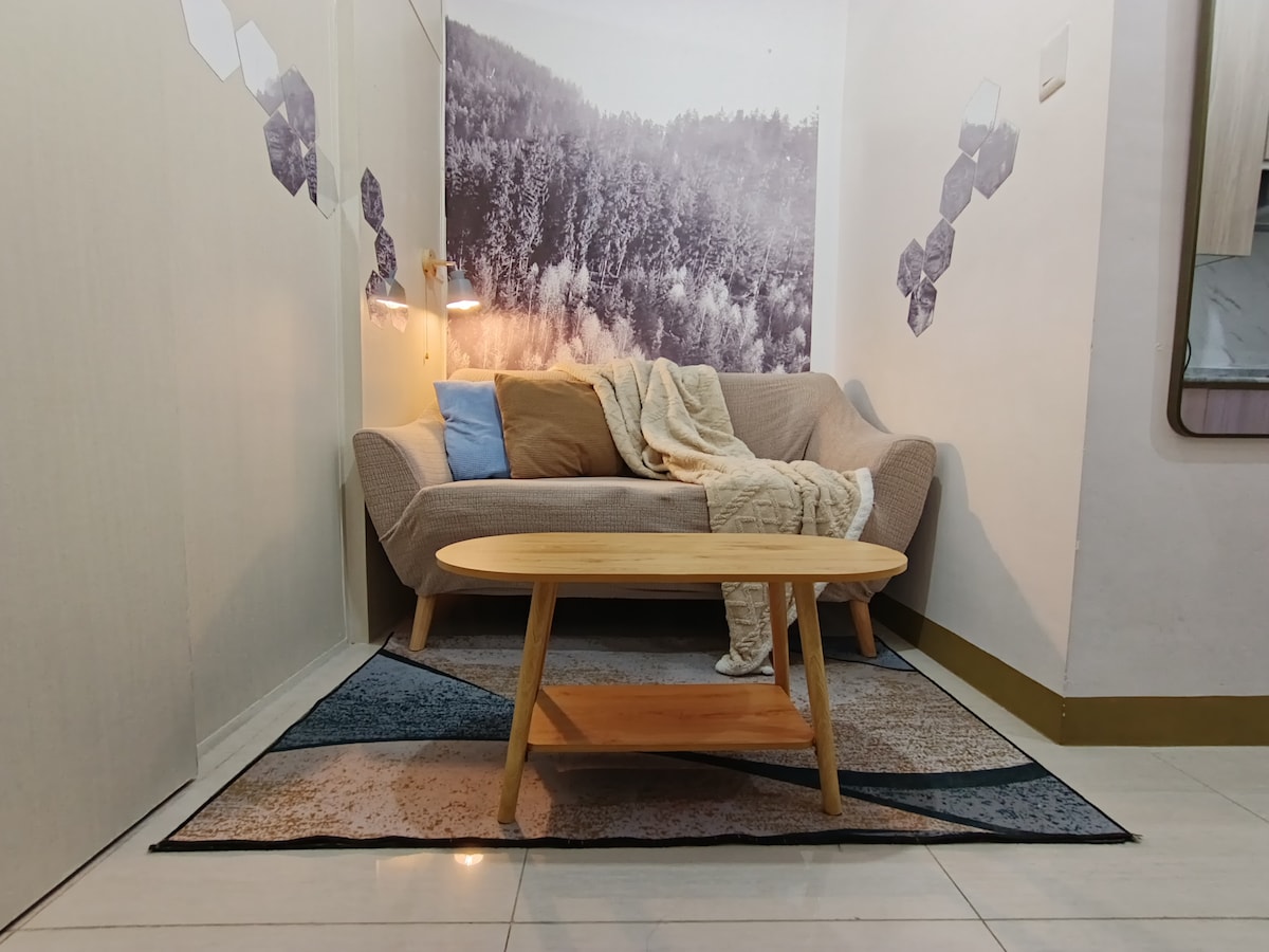 Take a break from the city within the city ON A BUDGET. If you are looking for a place to spend time with your loved ones without moving out of the Metro, this is the perfect place to be. Feel the breeze of fresh air upon entering the gate as you will be welcomed by pine trees giving you cool vibes of Tagaytay and Baguio. The unit features a balcony, laundry area, kitchenwares, 50" Smart TV, a king size bed and other amenities you need for your full staycation experience.