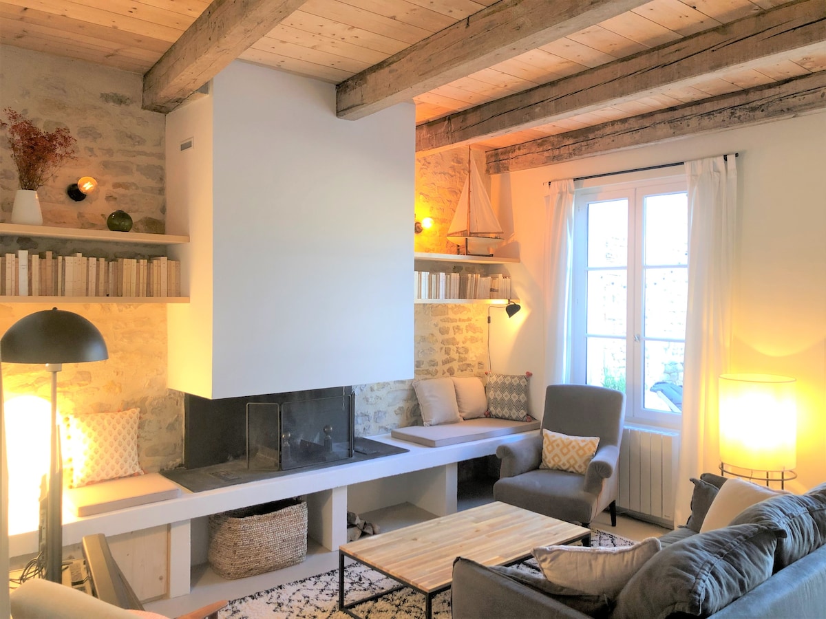Cách biển một quãng đi bộ ngắn, ngôi nhà rộng 130 m2 của chúng tôi được phân loại là “chỗ ở du lịch 3⭐️ có trang bị tiện nghi”, nằm ở Lauzières (làng hàu ở cổng La Rochelle và gần cầu Ile de Ré). Căn hộ bao gồm 2 phòng ngủ có điều hòa ở tầng trên và một phòng ngủ ở tầng trệt, một phòng tắm vòi sen, một phòng tắm, một phòng khách (40 m2) và một nhà bếp lớn có điều hòa (30 m2) nhìn ra không gian ngoài trời ấm cúng.