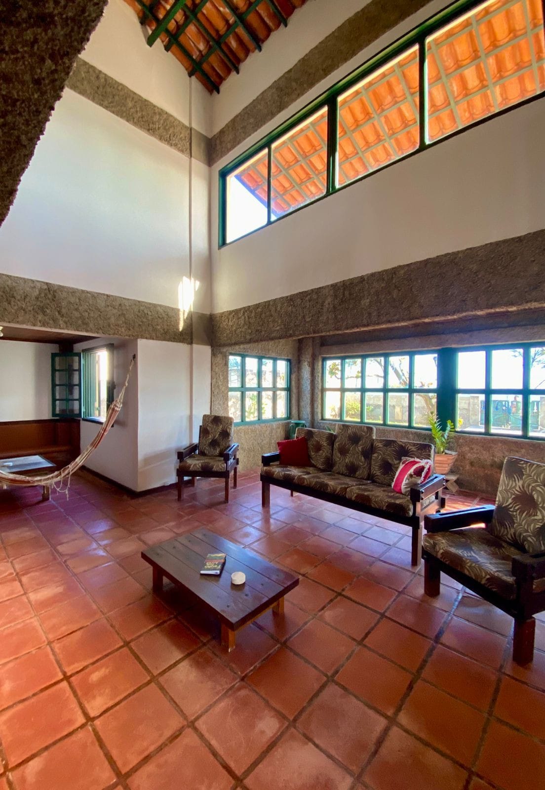 Bãi biển Guaratiba, ở Maricá/RJ, mê hoặc với biển lặng, bầu không khí gia đình và hoàng hôn khó quên. Chỉ cách bãi cát 150 mét, ngôi nhà này mang đến sự cân bằng hoàn hảo giữa sự thoải mái và thiên nhiên: 3 phòng ngủ (1 phòng tắm khép kín), phòng khách có TV thông minh, internet tốc độ cao, bếp đầy đủ tiện nghi và khu vực giặt ủi. Phía trước là võng và bàn ngoài trời để thư giãn; phía sau là sân có bếp nướng và gara. Hoàn hảo cho những ngày yên bình bên bờ biển.