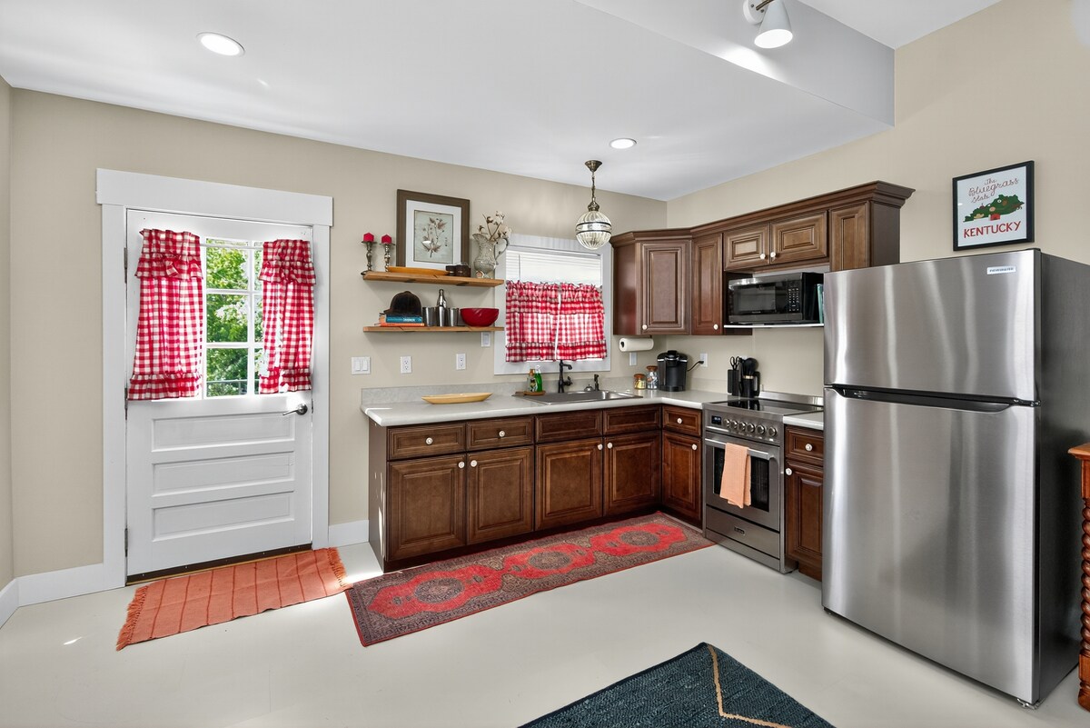 * NẰM NGAY TRÊN ĐƯỜNG MÒN BOURBON * Tại giường Barrel Head, chúng tôi cố gắng làm cho khách cảm thấy thoải mái nhất có thể. Vị trí này đã được cải tạo và trang bị nội thất mới; một chiếc giường cỡ queen hoàn toàn mới, ghế sofa kéo ra và quầy cà phê đảm bảo rằng bạn đang có được giấc ngủ và năng lượng cần thiết cho tất cả những nỗ lực của mình trong khi ở trên Bourbon Trail. Barrel Head cũng có thể sử dụng cho người khuyết tật. Không có bất kỳ bậc thang nào, và chúng tôi đã lắp đặt một lối đi trong buồng tắm vòi sen cho bất kỳ ai ngồi trên xe lăn.