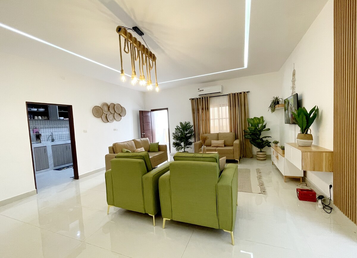 Căn hộ Kekely – Thiên đường thoải mái của bạn ở Kpogan Nằm trong khu vực yên tĩnh và nổi tiếng của Kpogan, gần Sanol Gaz, Căn hộ Kekely chào đón bạn trong một khung cảnh hiện đại, ấm áp và lý tưởng cho thời gian lưu trú ngắn hoặc dài của bạn. Căn hộ đầy đủ tiện nghi này, được thiết kế để mang lại sự thoải mái và thiết thực, nổi bật với 2 phòng ngủ rộng rãi và phòng khách được trang bị cẩn thận để đảm bảo nghỉ ngơi, riêng tư và thoải mái. Một sân thượng lớn cung cấp một nơi dễ chịu để uống cà phê.