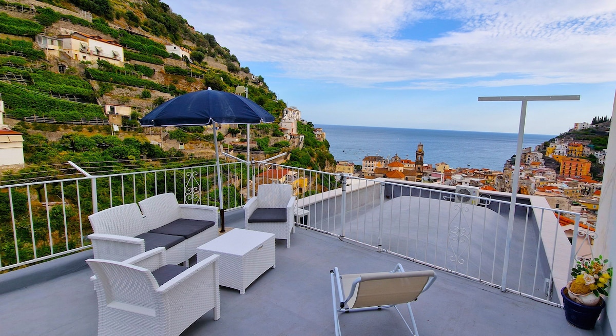 Nhà nghỉ dưỡng ở Thành phố Ravello, Mã giấy phép khu vực: 15065104EXT0135 . CIN : IT065104C2JFQEK5A7 Một sân thượng rộng rãi (tất cả đều dành riêng cho sử dụng) với ghế tắm nắng, vòi sen ngoài trời, tiệc nướng, thang máy, bãi đỗ xe, lối ra biển riêng, phòng máy lạnh, phòng khách lớn và sáng sủa, kiến trúc độc đáo và gần trung tâm thị trấn Minori ( 500 mét), là điểm mạnh của căn hộ này, cùng với tầm nhìn ra biển 180 ° tuyệt vời.
