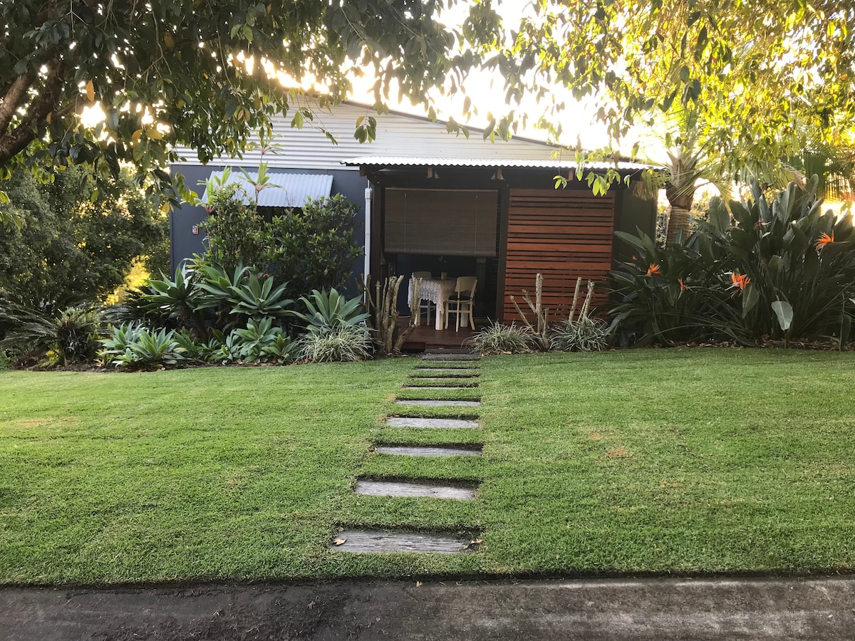 Our private Guest House is just a short stroll from beautiful Mudjimba beach offering you a relaxing romantic getaway or a creative space to work. One bedroom with Queen bed, desk, crisp linen, comfortable lounge, TV, dining area and window seat. A full kitchen includes a coffee maker, although we highly recommend the local cafes and restaurants which are an easy walk away. I would love to host you in our Guest House - you can send me a message with any questions that you may have.