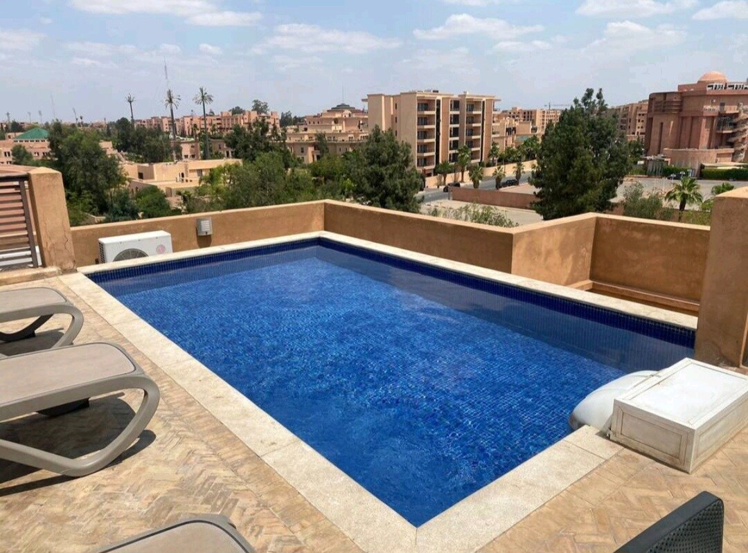 Căn hộ cao cấp 95 m² tại Marrakech, được trang bị đầy đủ tiện nghi, nằm trong khu vực yên tĩnh. Căn hộ bao gồm 2 phòng ngủ, 2 phòng tắm, bếp đầy đủ tiện nghi và phòng khách rộng rãi, sáng sủa với tầm nhìn ra hồ bơi XXL và ban công. Khu dân cư an toàn có bãi đỗ xe, vườn và khu vui chơi trẻ em. Vị trí lý tưởng gần trung tâm và Guéliz, cách khu phố cổ và Jemaa el-Fnaa 10 phút, gần Trung tâm thương mại Menara và Al Mazar.