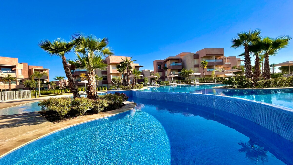 Khám phá căn hộ 2 phòng ngủ sáng sủa này ở Marrakech, nằm trong một khu sân golf riêng. Tận hưởng khung cảnh yên bình và đầy nắng với sân hiên rộng lớn với tầm nhìntoàn cảnh hồ bơi. Lý tưởng cho những khoảnh khắc thư giãn, không gian hiện đại và thoải mái này hoàn hảo cho một kỳ nghỉ yên tĩnh. Bạn sẽ cách các điểm tham quan địa phương vài phút trong khi ở trong một nơi trú ẩn yên bình an toàn. Một nơi đáng mơ ước!