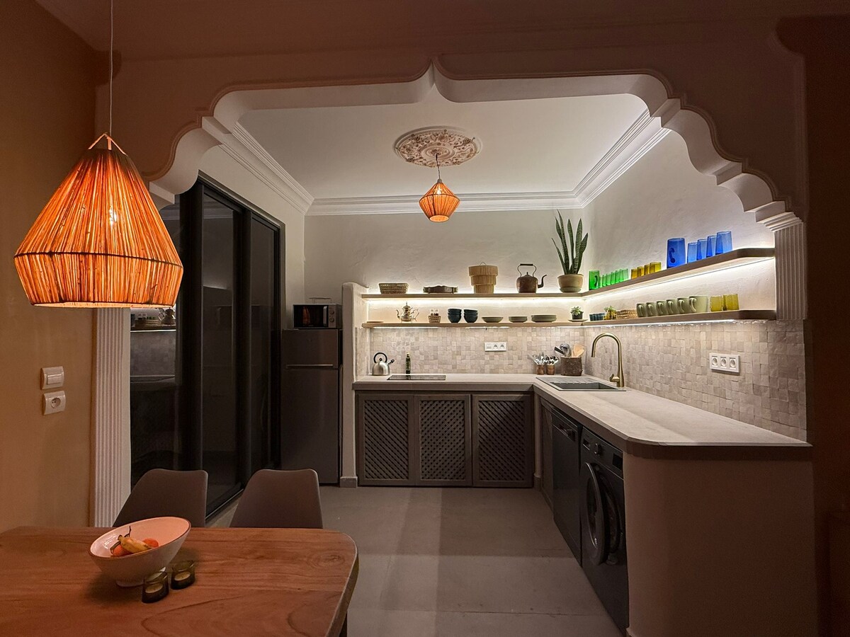 Ở ngay trung tâm Marrakech trong căn hộ 2 phòng ngủ, 2 phòng tắm của chúng tôi. Tận hưởng bộ đồ giường Simmons cao cấp, WiFi tốc độ cao (cáp quang) và trang trí hiện đại với nét dân tộc. Nhà bếp đầy đủ tiện nghi, nhà bếp đầy đủ tiện nghi, bồn tắm đầy phong cách và vòi sen kiểu Ý. Đi bộ một đoạn ngắn từ quảng trường Jemaa el-Fna, Plazza và Carré Eden. Lưu ý: Không được phép kết hôn với các cặp vợ chồng Ma-rốc chưa kết hôn.