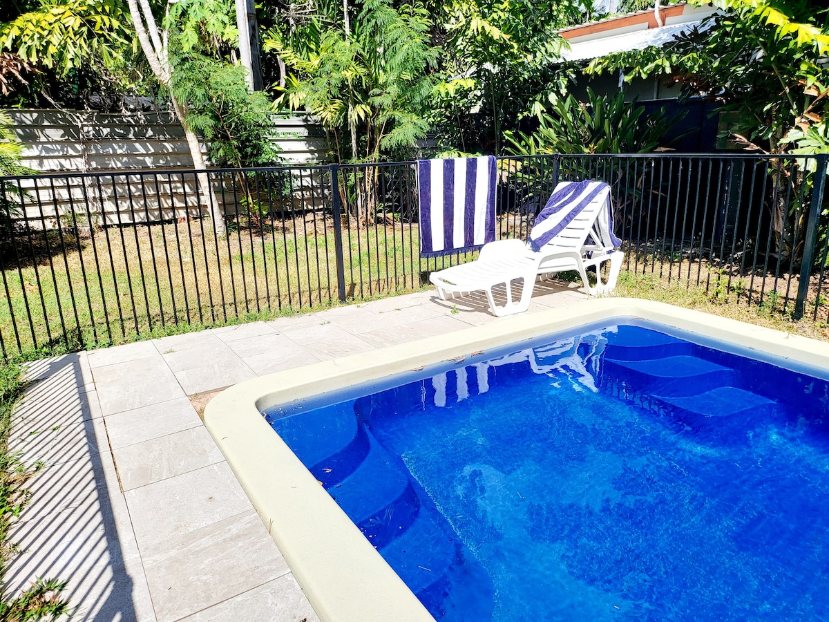 Enjoy this original Bali Bungalow with ensuite nestled in the back corner of our family’s tropical garden. It offers a simple double bed, tea/coffee making facilities, fridge, microwave and deck. A large swimming pool, outdoor kitchen, laundry and various sitting areas are available to share. We are close to everything - foreshore, markets, buses etc. You will easily be able to soak up every sunset possible during your stay! (Please note: kids share the outdoor space & NO tv or wifi provided)