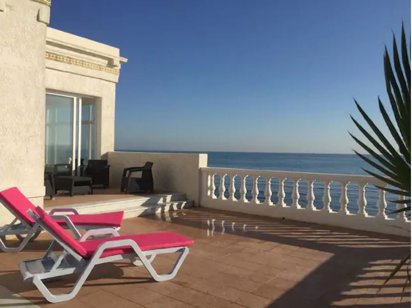 On the seafront, on the Marsa corniche beach. 5 minutes walk from the city center and close to all amenities. S 1 Completely renovated (May 2021), it consists of 2 living rooms + a bedroom + a bathroom with walk-in shower and toilet. You will have a modern equipped kitchen which opens onto a patio. A unique house with 2 living rooms + 150m² of terrace facing the sea, not overlooked. It is possible to bring the car into the garden. (arrival after 8 p.m. possible)