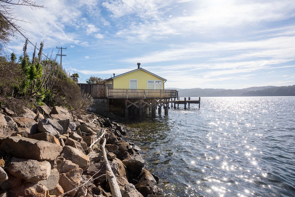 Nhà nghỉ thôn dã trên bãi biển mộc mạc với bồn tắm nước nóng trên vịnh Tomales