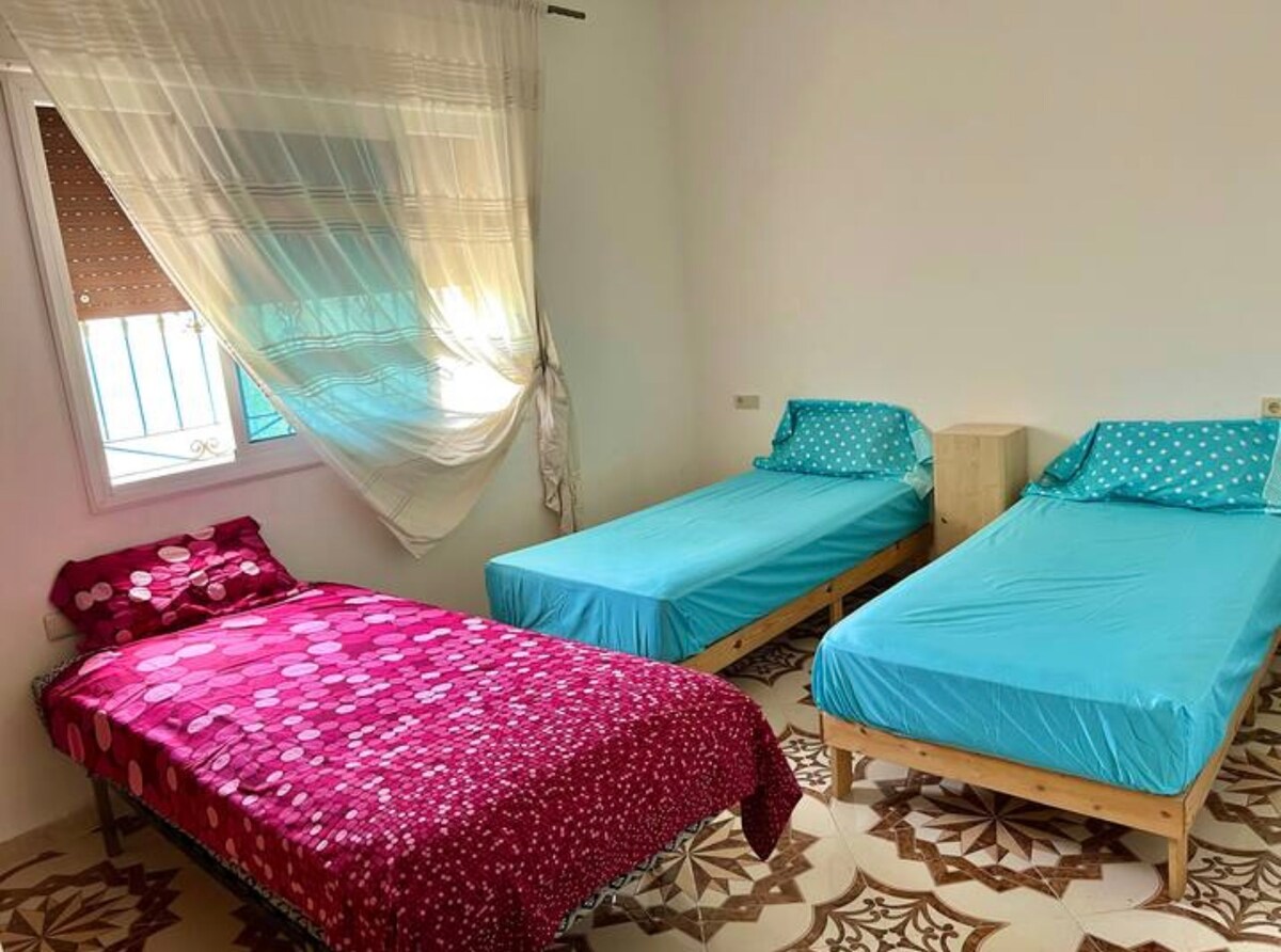 🏡 ¡Bienvenidos a tu refugio en M’diq, Tetuán! Descubre el norte de Marruecos desde nuestra acogedora casa mata, ideal para familias, parejas o grupos. A solo 800 m de las playas de Rincón, San Juan, Cabo Negro y M’diq. Ubicada junto al restaurante Dos Mares, famoso por su excelente cocina. 🛌 1 habitación con cama matrimonial, baño, salón, comedor y patio privado. 🌅 Disfruta hospitalidad marroquí y una experiencia inolvidable. Colchón de bebé está disponible