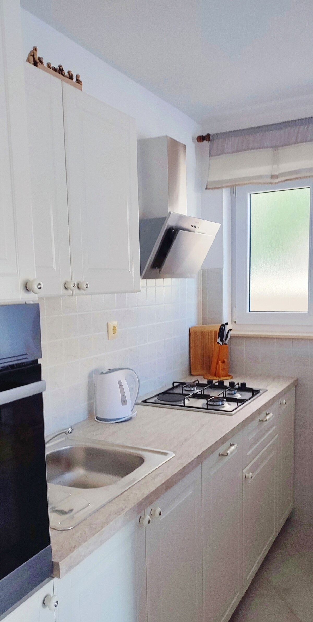 Cozy studio with a stunning sea view with shared terrace. Located by the beach, just 2 km from Trogir, this small but fully equipped studio is a great base for your vacation in central Dalmatia. A beautiful pebble beach is right across the street — just a few steps away. The terrace is shared between two studios, with a designated area in front of each for private use. Please note that during peak season, street parking can be difficult to find, even further from the house.