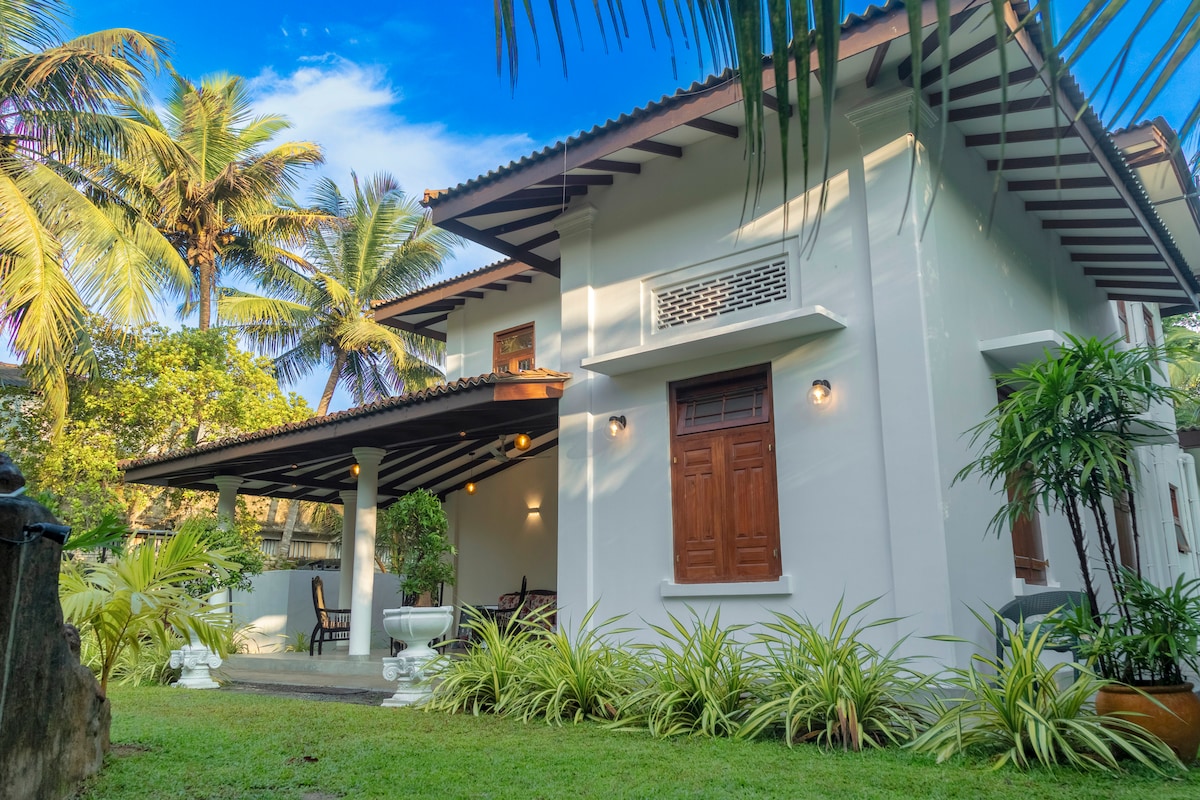 Khám phá sự yên tĩnh tại biệt thự khép kín hoàn toàn của chúng tôi ở làng ven biển Madiha. Với đại dương ngay trước cửa nhà bạn, những khu vườn tươi tốt và bầu không khí thư giãn, đây là nơi hoàn hảo cho các cặp đôi hoặc những người đi du lịch một mình tìm kiếm sự thoải mái. Nhà bếp đầy đủ tiện nghi, điều hòa nhiệt độ và vòi sen nước nóng. 2 phút đi bộ đến những con sóng hoàn hảo của Madiha. Trung tâm của nhiều địa điểm văn hóa và du lịch. Nhân viên tận tâm đảm bảo thời gian lưu trú suôn sẻ. Đặt ngay để có một kỳ nghỉ khó quên tại Sri Lanka!