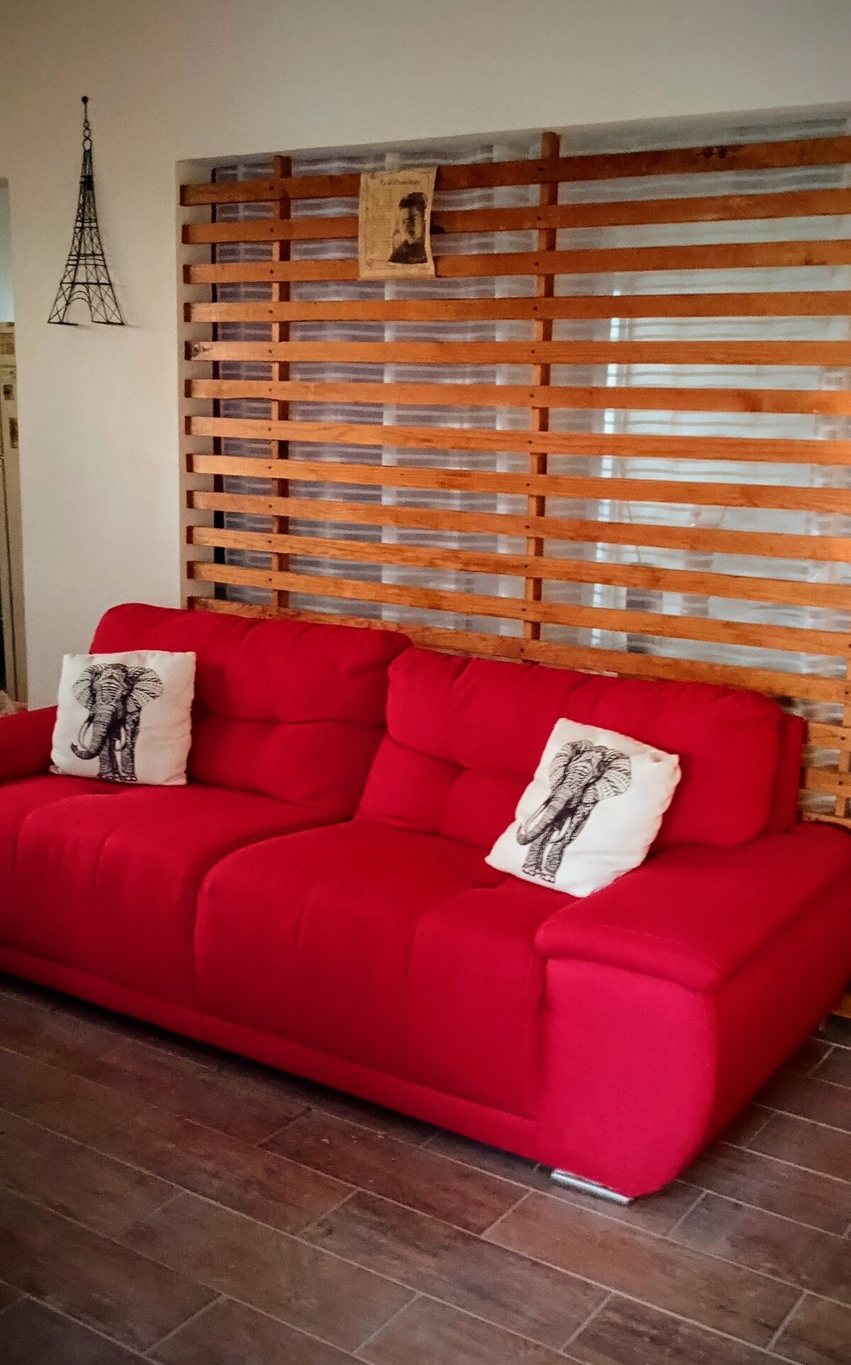 La casa tiene tres recámaras, cada una con una cama Queen size, dos de las recámaras tienen cada una un sofá cama y en la sala de estar hay otro más matrimonial, en total 3 sofás cama y un catre. Por lo tanto es apta para hasta 8 personas. Tiene una pequeña terraza con asador, cocina equipada, comedor y sala de estar. Tendrían toda la casa y terracita para ustedes. Yo vivo atrás y tengo mi entrada independiente.