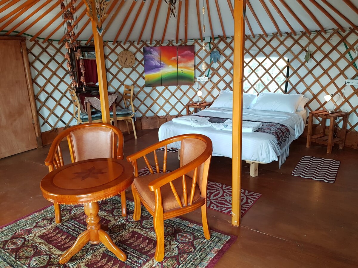 Một lều yurt xinh đẹp ngay trung tâm làng sinh thái Klil. Lều yurt được bao bọc trong cây xanh đa dạng và đầy sự yên tĩnh, tươi sáng và thư giãn. Từ boong trước có tầm nhìn đáng yêu ra những ngọn núi và hai ngọn núi mỏng còn lại hẻo lánh, đối diện với những khu vườn hoa và một hồ bơi sinh thái với một đài phun nước ấm cúng. Bếp của chúng tôi ăn chay và được trang bị tốt để nấu ăn. Bạn có một bếp gas, nồi, chảo, gia vị, dầu ô liu, bát và các món ăn đẹp tuyệt vời để phục vụ. Phòng ngủ đẹp và ấm cúng với điều hòa không khí. Vòi sen nước nóng 24/7, được trang bị đầy đủ tiện nghi và đẹp mắt. Lều yurt nằm trong khoảng cách đi bộ từ một cửa hàng hữu cơ và những con đường mòn đi bộ đường dài địa phương. * * Lều yurt không phù hợp cho trẻ em từ 8 tháng đến 7 tuổi * *
