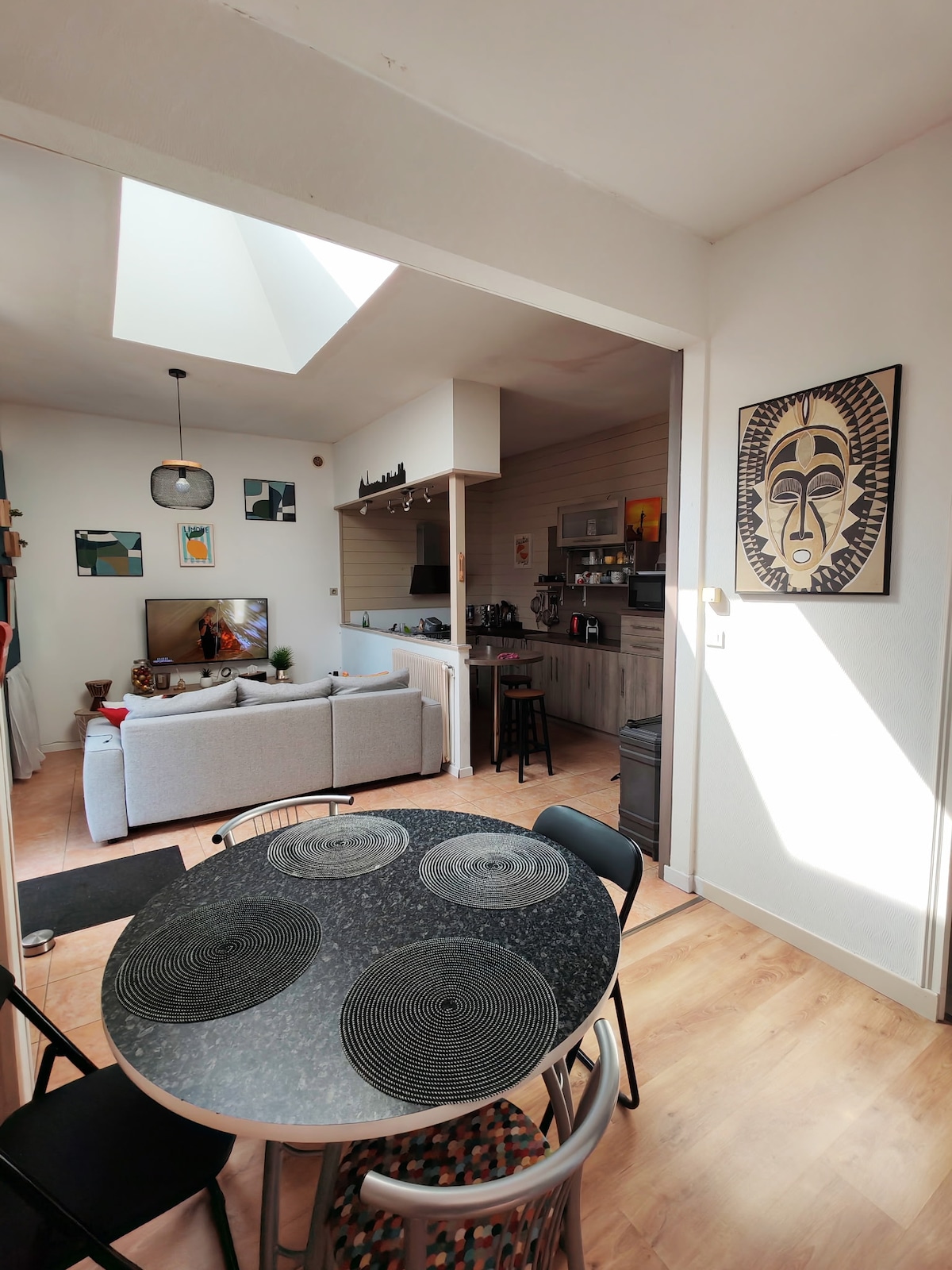 🏠 Nhà phố "Lodge" ở Doué la Fontaine, gần Đấu trường và Sở thú. Chỗ ở này có 1 phòng ngủ trên lầu với phòng tắm và nhà vệ sinh. 1 không gian ngủ bổ sung (giường sofa bổ sung) trong phòng khách và khu vực ăn uống với tất cả các thiết bị nhà bếp cần thiết và máy giặt. Chỗ ở đã được cải tạo hoàn toàn vào năm 2022. 🦒 Một lối trang trí lấy cảm hứng từ Sở thú Doué la Fontaine (Bioparc) sẽ mời bạn tham gia một hành trình. ☀️ Một sân thượng và sân hiên rộng rãi sẽ cho phép bạn tận hưởng những khoảnh khắc thú vị.