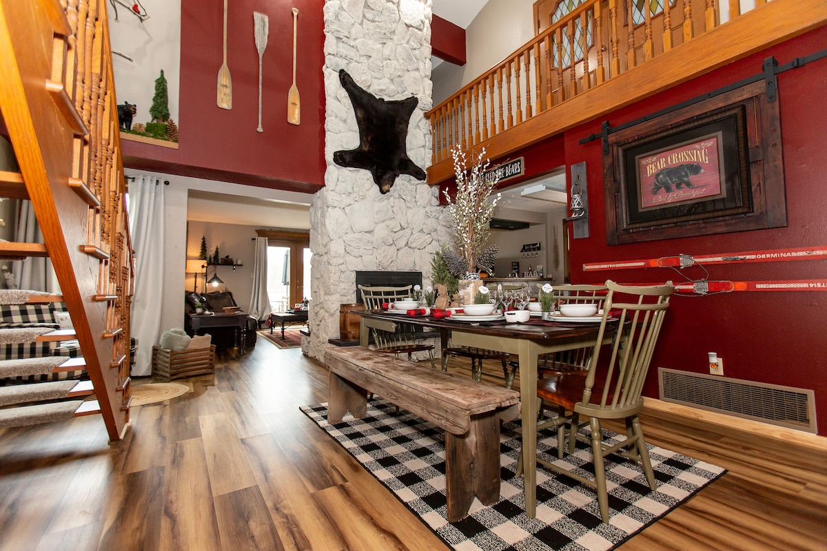 Chào mừng bạn đến với nhà nghỉ ven hồ mộc mạc của chúng tôi, một nơi nghỉ ngơi ấm áp và hấp dẫn hoàn hảo cho các gia đình và các nhóm. Bên trong có lò sưởi đá hai mặt tuyệt đẹp, trần nhà cao vút, không gian sống ấm cúng và bếp đầy đủ tiện nghi lý tưởng để tụ tập. Bước ra ngoài để ngắm nhìn quang cảnh hồ rộng lớn, bồn tắm nước nóng riêng, lò sưởi, hồ bơi và nhiều chỗ ngồi ngoài trời để thư giãn và nghỉ ngơi. Cho dù bạn đang tận hưởng buổi sáng yên tĩnh bên mặt nước hay buổi tối bên đống lửa, nhà nghỉ này được tạo ra cho những kỳ ở đáng nhớ.