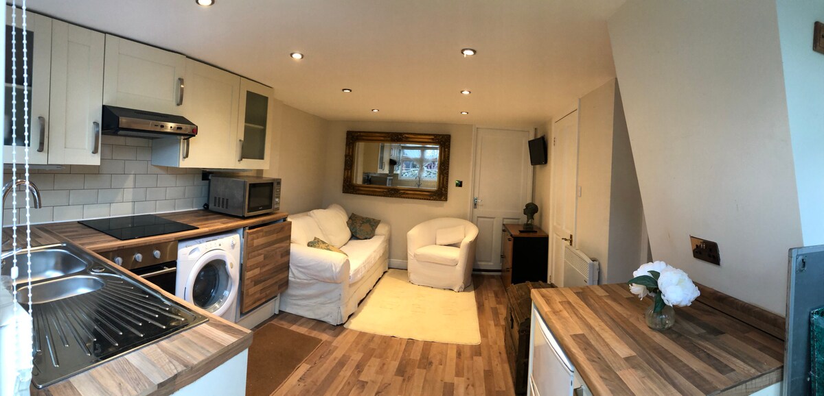 Thư giãn và tận hưởng không gian sáng sủa và thoáng khí của riêng bạn trong một khu dân cư yên tĩnh, gần Downs và chỉ cách Guildford High Street 20 phút đi bộ. Cửa kiểu Pháp từ phòng khách mở ra một sân hiên riêng với khu vực ăn uống ngoài trời. Có khu vực bếp đầy đủ tiện nghi với bàn ăn, phòng tắm vòi sen và phòng ngủ. Một cơ sở hoàn hảo để khám phá Surrey Hills hoặc RHS Wisley và chỉ 40 phút lái xe đến Heathrow hoặc Gatwick. Wifi nhanh và chỗ đỗ xe trên đường lái xe vào nhà. Có tính phí xe điện theo yêu cầu với chi phí thấp.