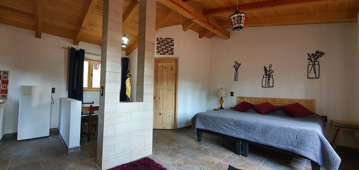 Cabin lý tưởng cho các cặp đôi có tầm nhìn đẹp và ở giữa rừng. Nó có: . - Ban công. .- Nướng. .- Một căn bếp được trang bị đầy đủ tiện nghi. .- Phòng tắm đầy đủ .- 1 giường KS .- 1 sofa giường . - Phòng ngủ - Nằm cách trung tâm Mazamitla 15 phút Sân thượng với khu vực sảnh khách và tầm nhìn tuyệt đẹp.
