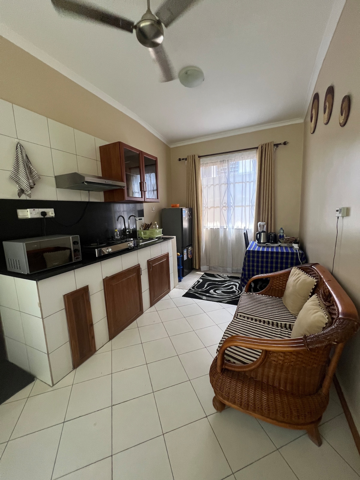 Căn hộ 1 phòng ngủ, 1 phòng tắm này nằm trong một khu phức hợp chung an toàn với an ninh 24 giờ và chỉ cách Bãi biển Bahari 1 km. Tọa lạc tại vị trí trung tâm gần Chợ Nyuki nổi tiếng, Trung tâm thương mại phức hợp Kibo và Siêu thị Jambos. Nhà bếp đầy đủ tiện nghi, khu vực ăn uống nhỏ, khu vực tiếp khách nhỏ, khu vườn đẹp và WIFI. ATM ở ngay góc phố và có một số nhà hàng địa phương ở khu vực gần đó.