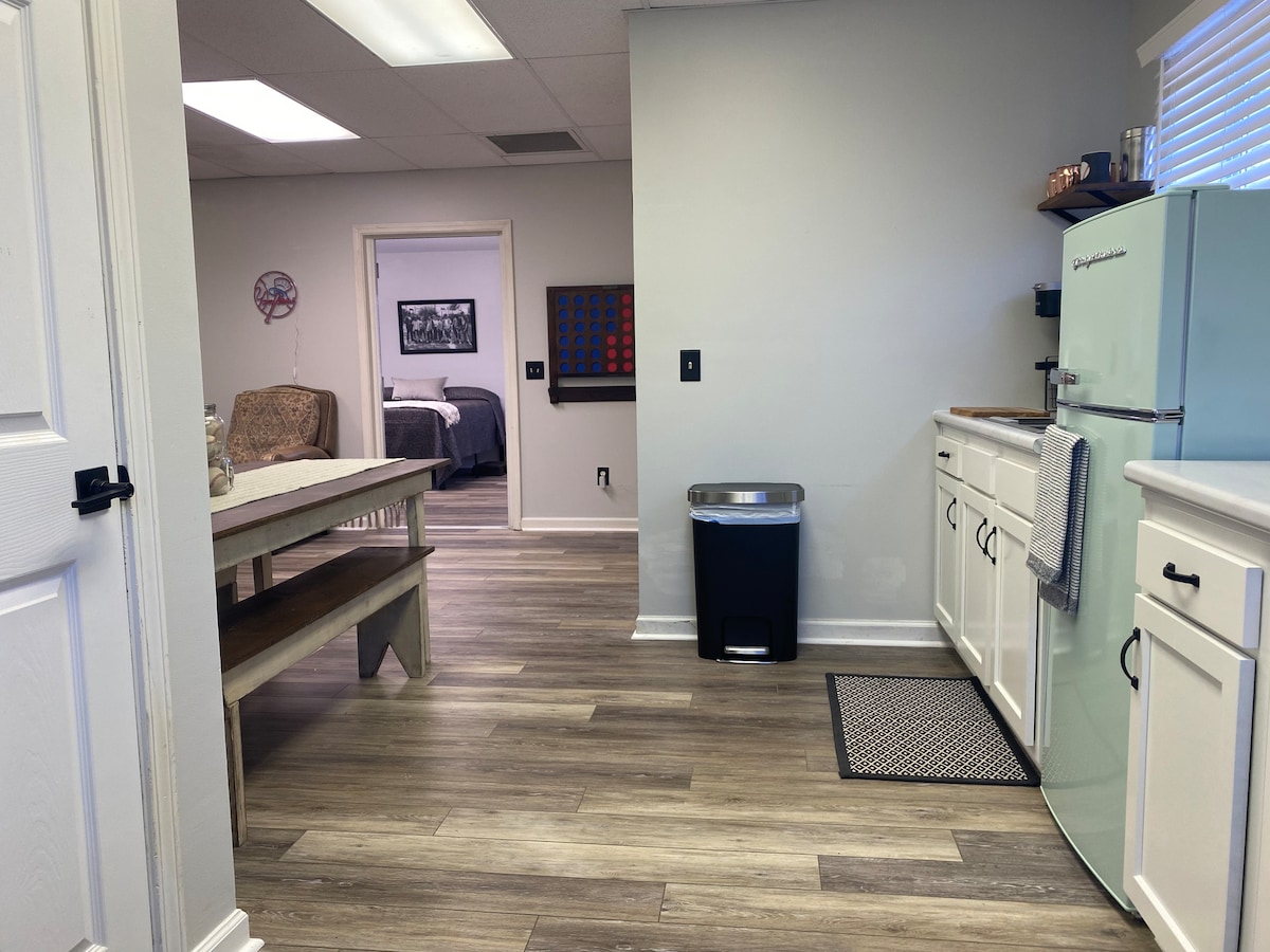 Second Story Walk Up Studio Apartment in Historic Downtown Paducah KY. Căn hộ hiệu quả này bao gồm nhà bếp với mặt bàn bằng đá granit và đảo trung tâm, máy giặt và máy sấy, phòng tắm lớn với vòi sen lát gạch, khu vực tập trung với ghế sofa có kích thước đầy đủ và giường đôi. Studio đầy đủ tiện nghi này bao gồm ga trải giường, nhà bếp được trang bị tốt, máy giặt và máy sấy, lối vào riêng biệt. Được phép mang theo thú cưng khi được chấp thuận với một khoản phí. Vệ sinh là ưu tiên hàng đầu của chúng tôi. Chúng tôi thực hiện theo quy trình vệ sinh tăng cường của Airbnb, đảm bảo mọi thứ đều được vệ sinh và sát trùng đúng cách.