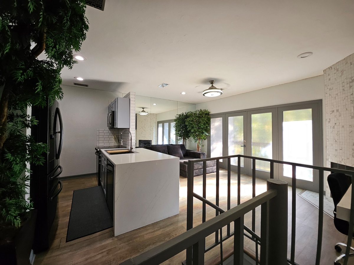 Căn hộ tầng trên cùng được cải tạo tuyệt vời với các thiết bị, đồ nội thất mới và thiết kế chu đáo! Vị trí hoàn hảo - chỉ cách Chợ Trung tâm, Rusty Taco, Greenville Ave một quãng ngắn; xuống phố từ Đại học SMU, cách Hwy 75 vài phút. Được cải tạo hoàn toàn từ sàn đến trần; nhà bếp mở với quầy đá granit và chỗ ngồi quầy bar, ghế sofa da, phòng ngủ lớn với giường cỡ king, hai tủ quần áo khổng lồ, không gian văn phòng, TV thông minh gắn tường, máy pha cà phê; tiếp cận hồ bơi cộng đồng và lò nướng bbq.