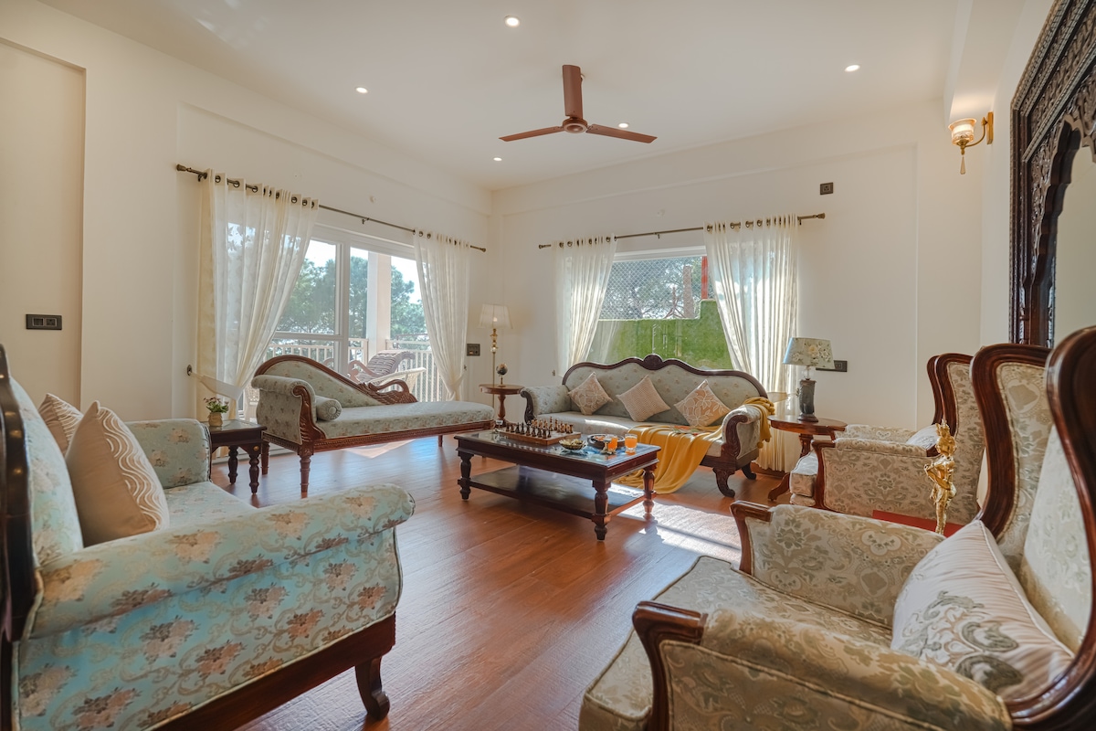 Tận hưởng sự quyến rũ mộc mạc và sang trọng hiện đại với điểm nhấn gỗ tự nhiên và tông màu đất, tạo ra một bầu không khí ấm cúng, ngay trung tâm Dharamshala. ✨ Điều gì làm cho ngôi nhà của chúng tôi trở nên đặc biệt Tận hưởng tầm nhìn tuyệt đẹp ra dãy Dhauladhar từ khu vườn của chúng tôi. Khu vườn tươi tốt của chúng tôi, đầy hoa và cây ăn quả, hoàn hảo để thư giãn hoặc uống trà buổi sáng của bạn. Tọa lạc tại vị trí thuận tiện, chợ địa phương, Sân vận động HPCA, vườn trà và các điểm tham quan khác nằm trong phạm vi 5 km, giúp việc tham quan và mua sắm trở nên dễ dàng