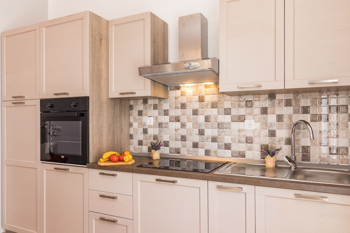 Căn hộ nằm gần trung tâm thành phố Opatija, chỉ cách đó vài phút đi xe hơi hoặc tám phút đi bộ. Nó bao gồm một phòng khách, một phòng ngủ, một phòng ăn, hai phòng tắm, nhà bếp, phòng xông hơi, phòng chờ không gian mở, sân thượng, vườn xung quanh và bãi đỗ xe. Nhờ thực tế là ở tầng trệt với một khu vườn xung quanh, bạn có cảm giác thuê một ngôi nhà chứ không phải căn hộ.